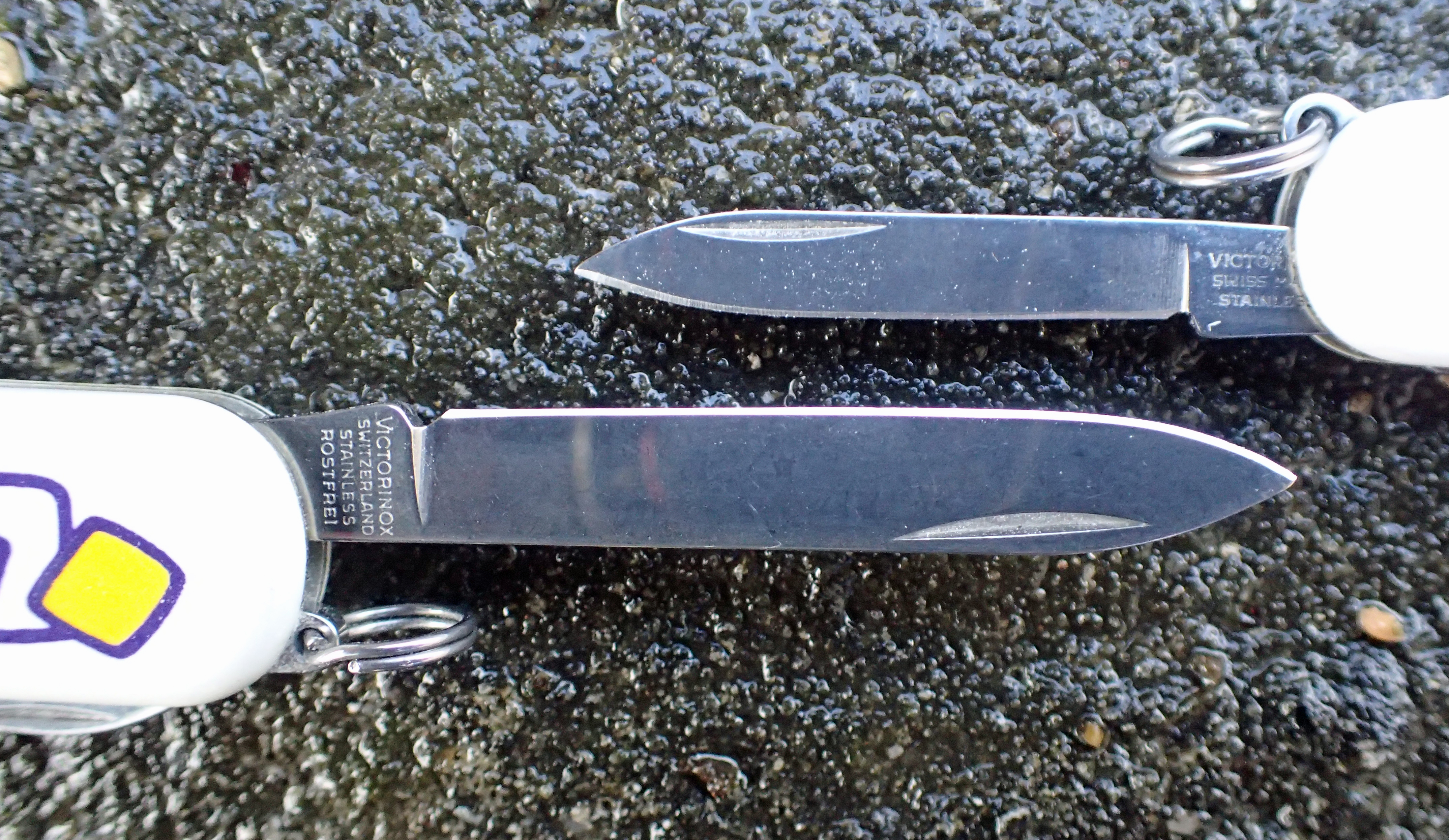 Blades of 58mm Classic and 74mm Ambassador compared. For just a little longer knife you get a lot more capable blade
