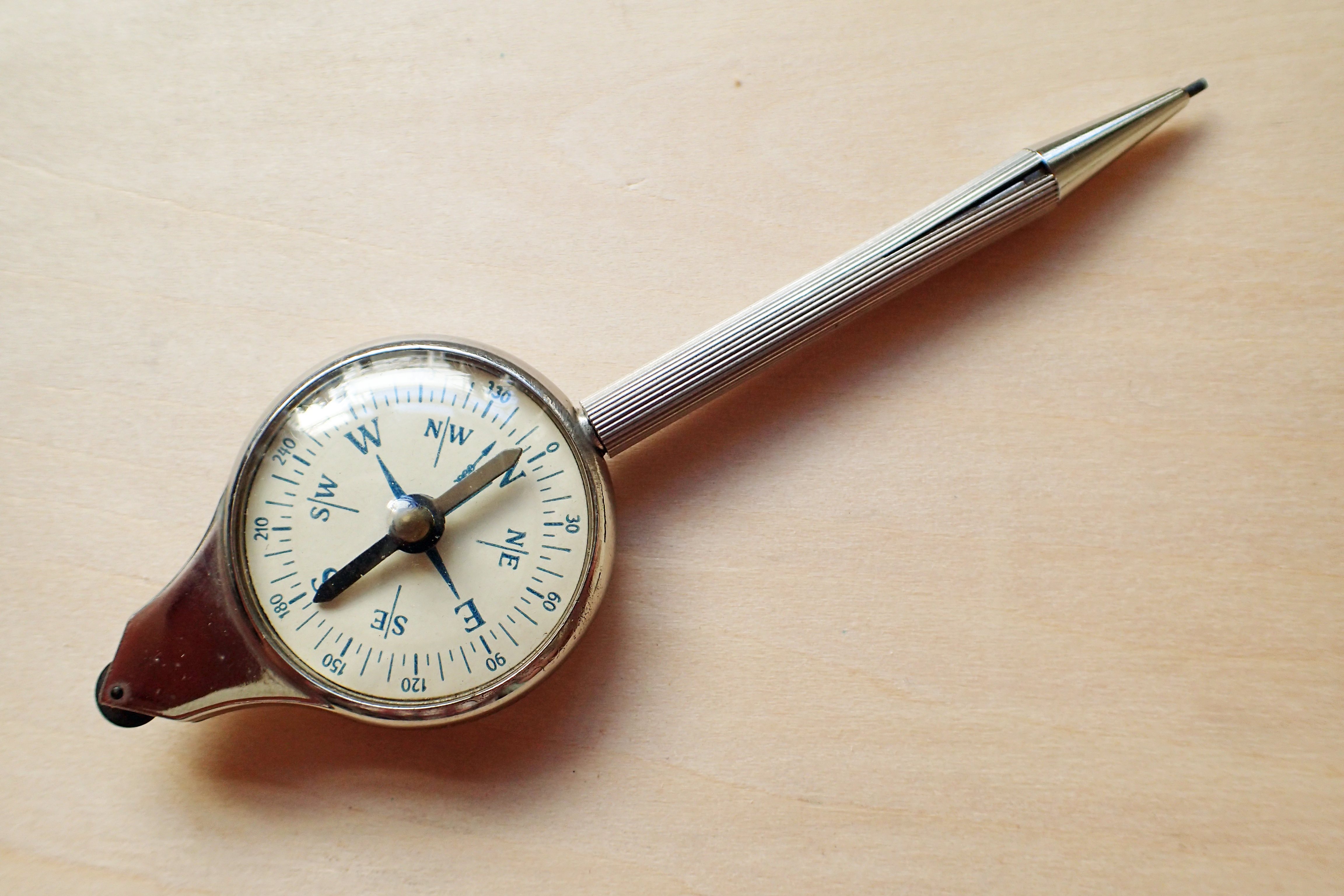 This is by no means a unique combination. There are a number of surviving examples of Victorian map measures that also include a compass, so common is the combination that many very cheap and cheerful Chinese made plastic bodied measurers produced today also have a tiny compass included.