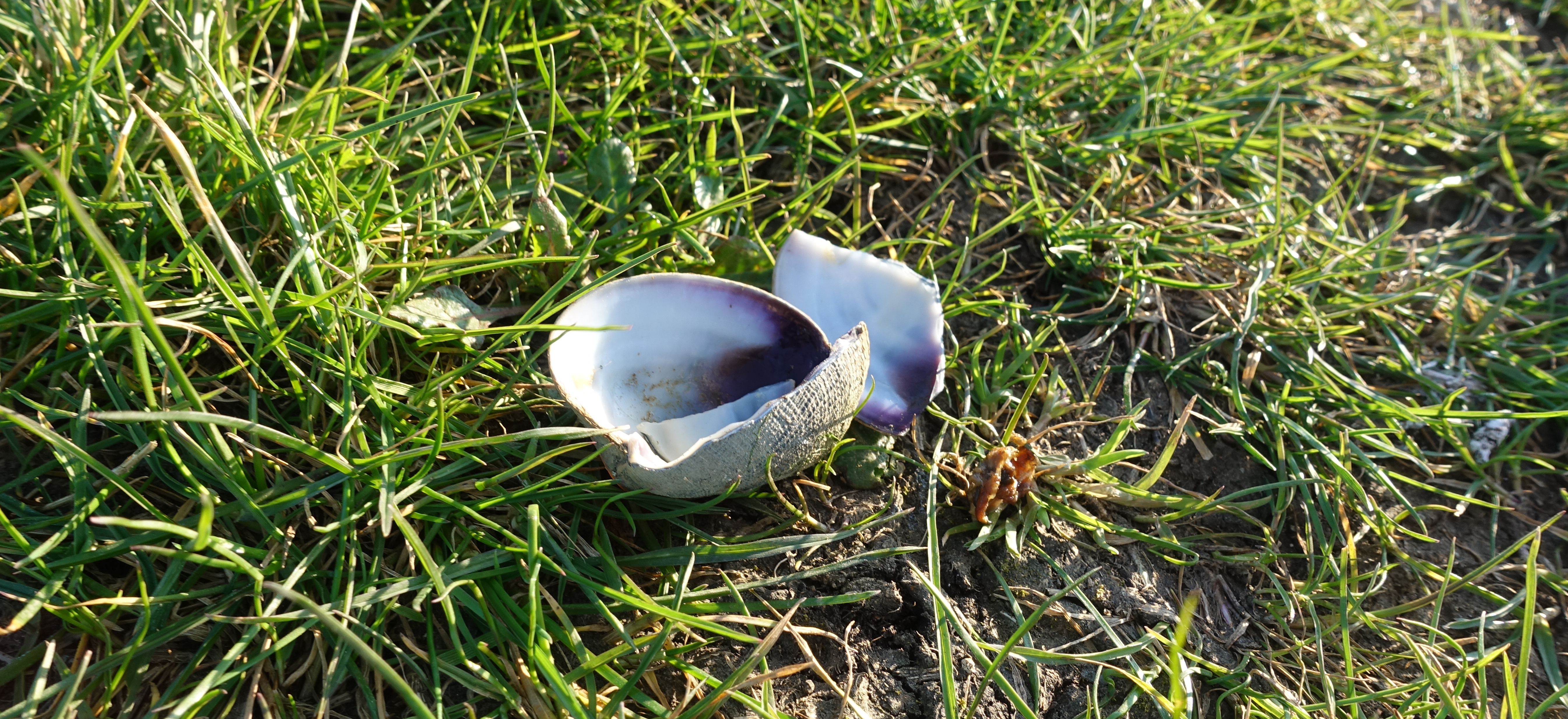 Freshly pillaged shells are frequently seen underfoot where some creature has bought them ashore to the short turf for better purchase