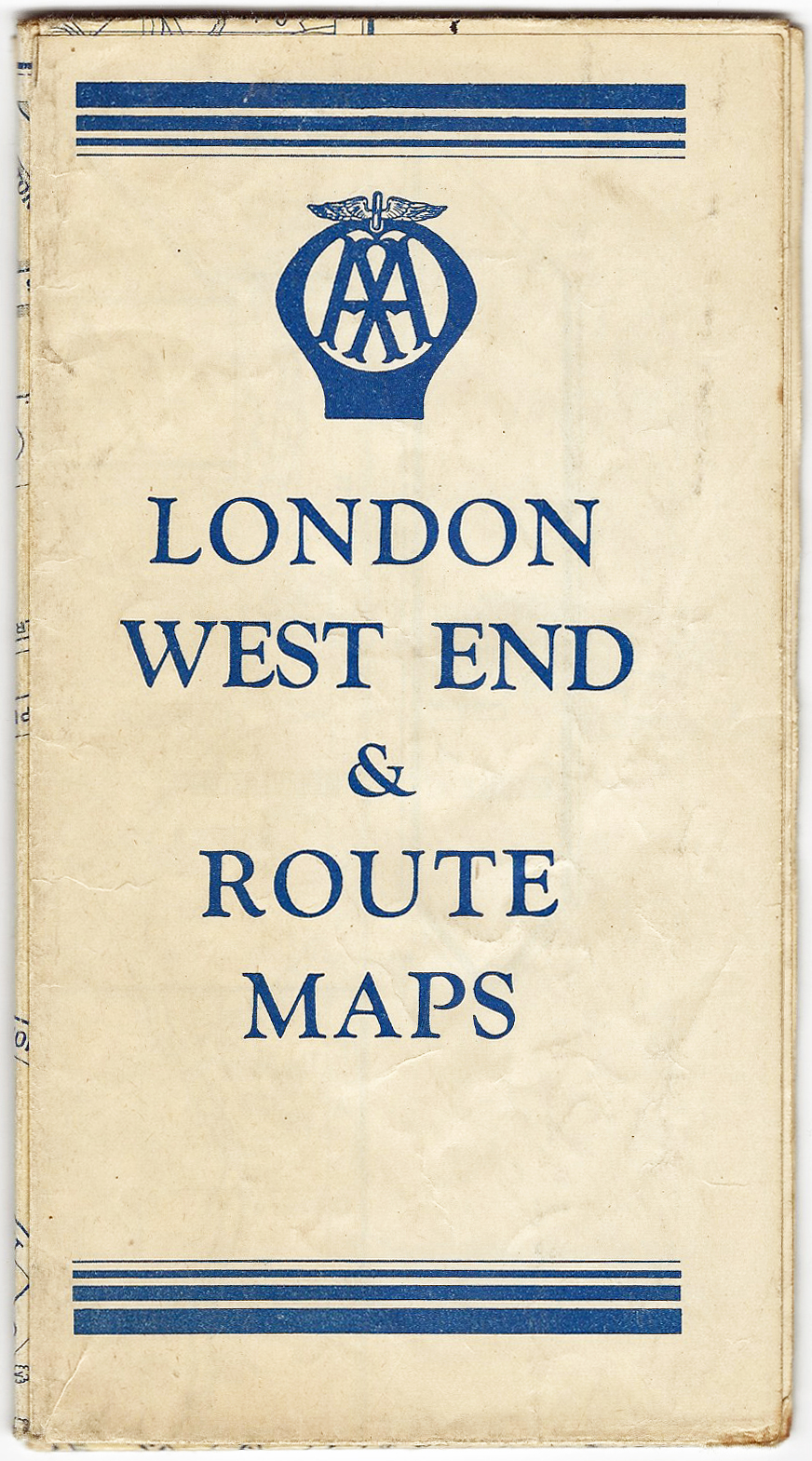 “members are reminded that, in addition to this map, the Association issues a number of publications of service to the motoring visitor to the Metropolis. These booklets may be obtained free of charge at any A.A. Office”