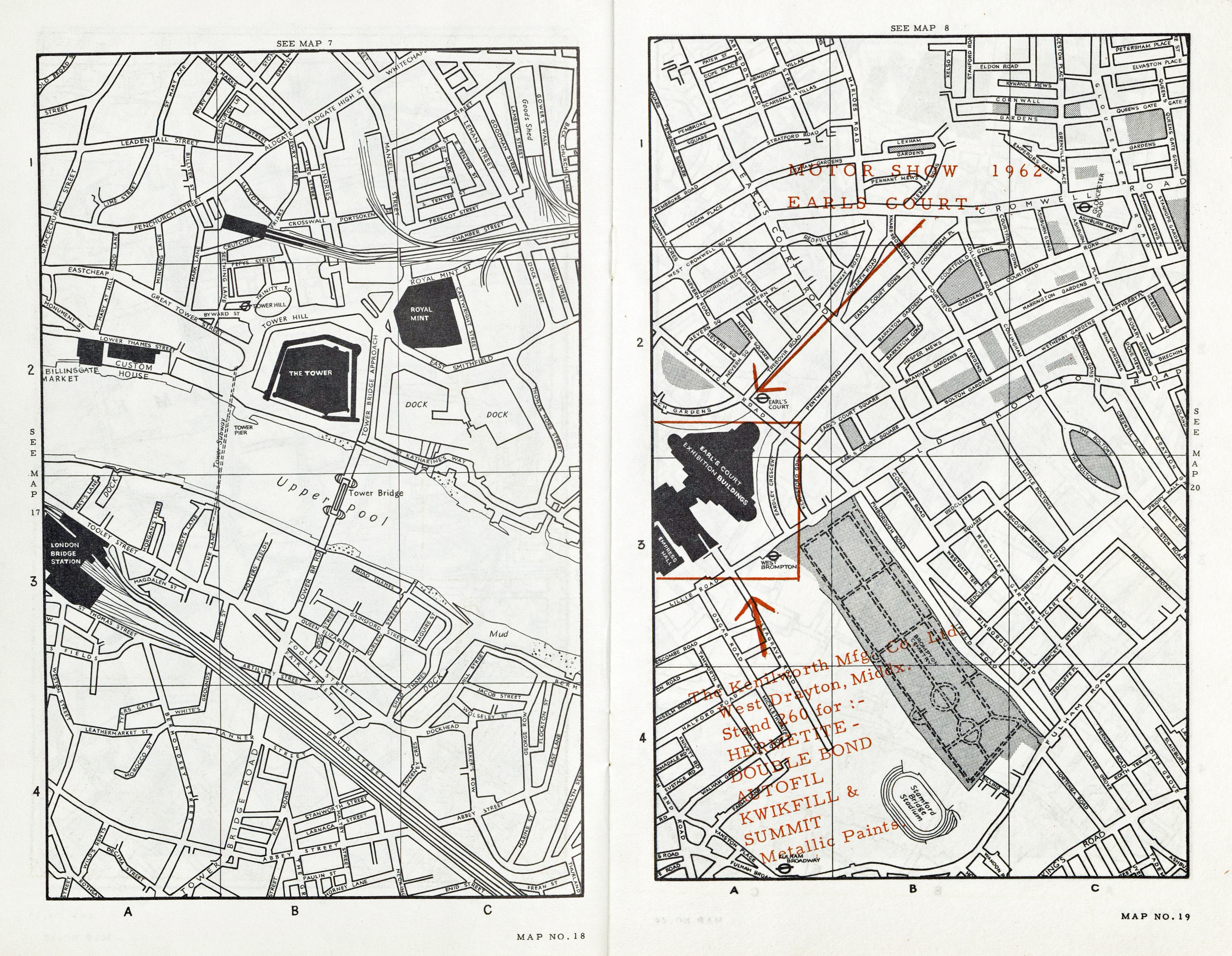 One of the bombsites in London shown on the AA map had been acquired by Ronald Hobson and Sir David Gosling in 1948 for private parking and this facility enabled them to form Central Car Parks. In 1959, they took over National Car Parks (NCP), who were the UK’s oldest private car park operator (founded 1931). NCP went on to produce free city maps, including London, showing the location of their car parks. Frequently these were produced in collaboration with a partner.