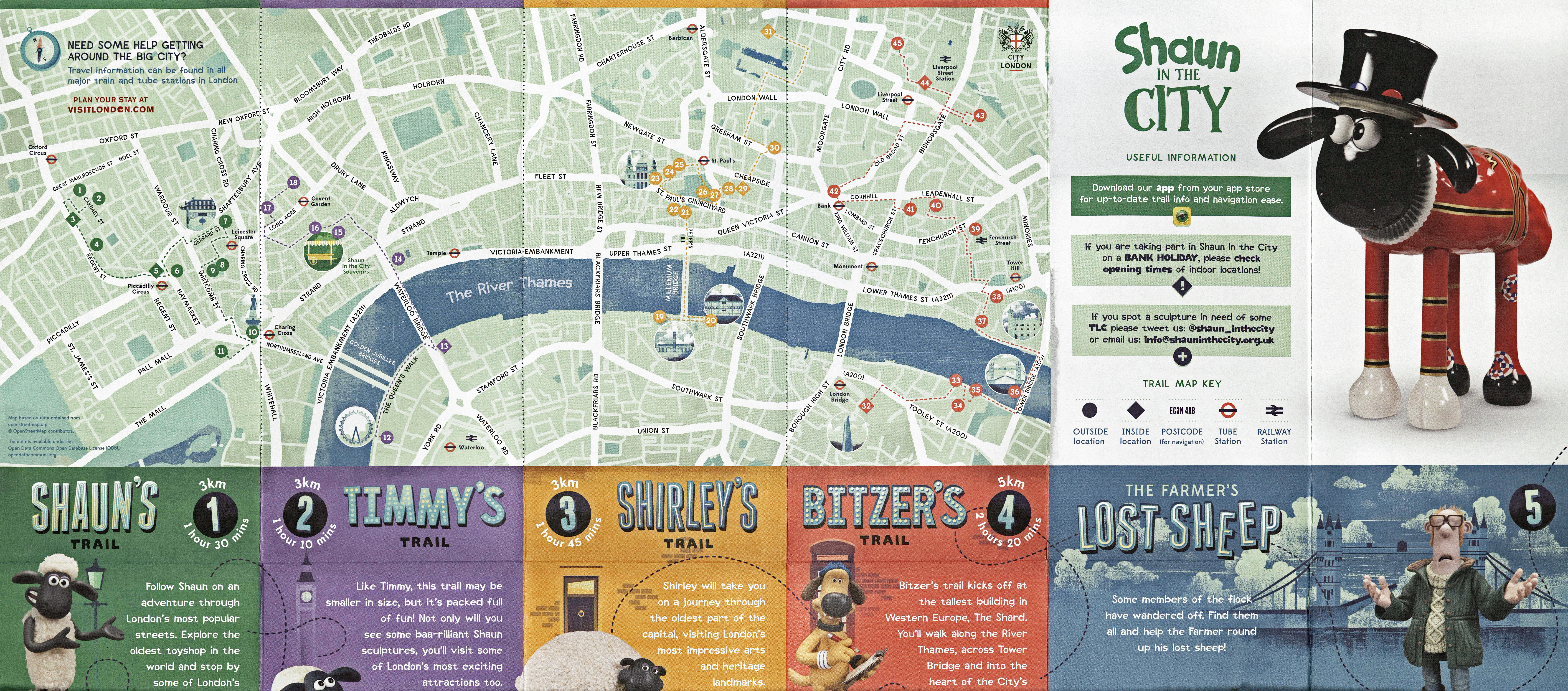 Shaun in the City sculpture trail map, produced and issued free in 2015