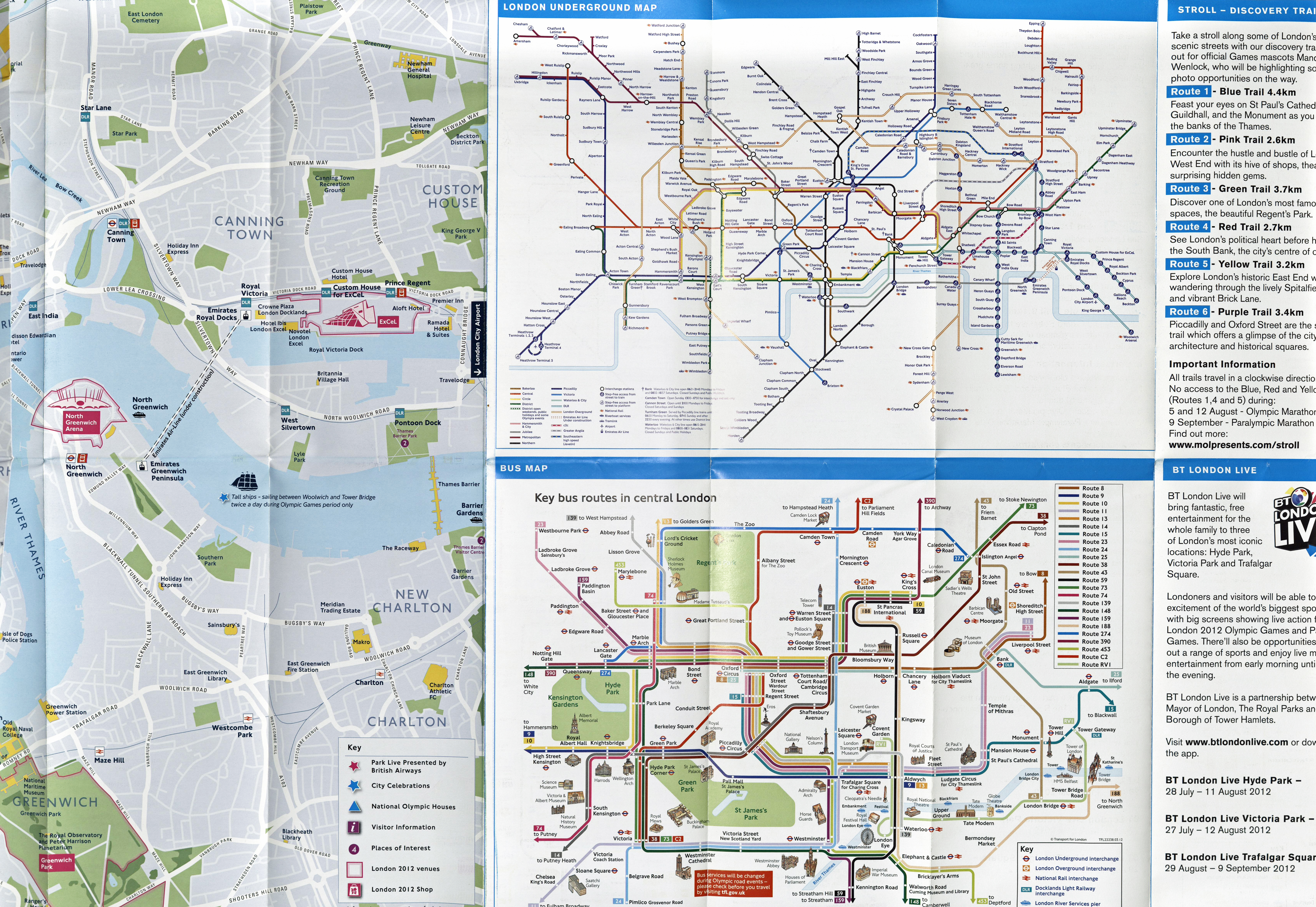 Possibly the best free paper map ever produced by TfL was the large (990mm x 620mm) double sided map released as part of the 2012 celebrations when London hosted the Olympic Games.