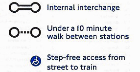 When the ‘under a 10 minute walk’ addition was made, the central area (Zone 1) of London was largely ignored due to the cramped aspect of the map in this area, the large number of stations and the sheer impracticality of showing all possible ground level walking connections. There are also some glaring omissions outside the central area but no doubt future map refinement will add these where practical and possible on an already cramped map. In addition to the standard Tube map, there is also an online version of the map that provides an indication of how long it takes to walk between stations.