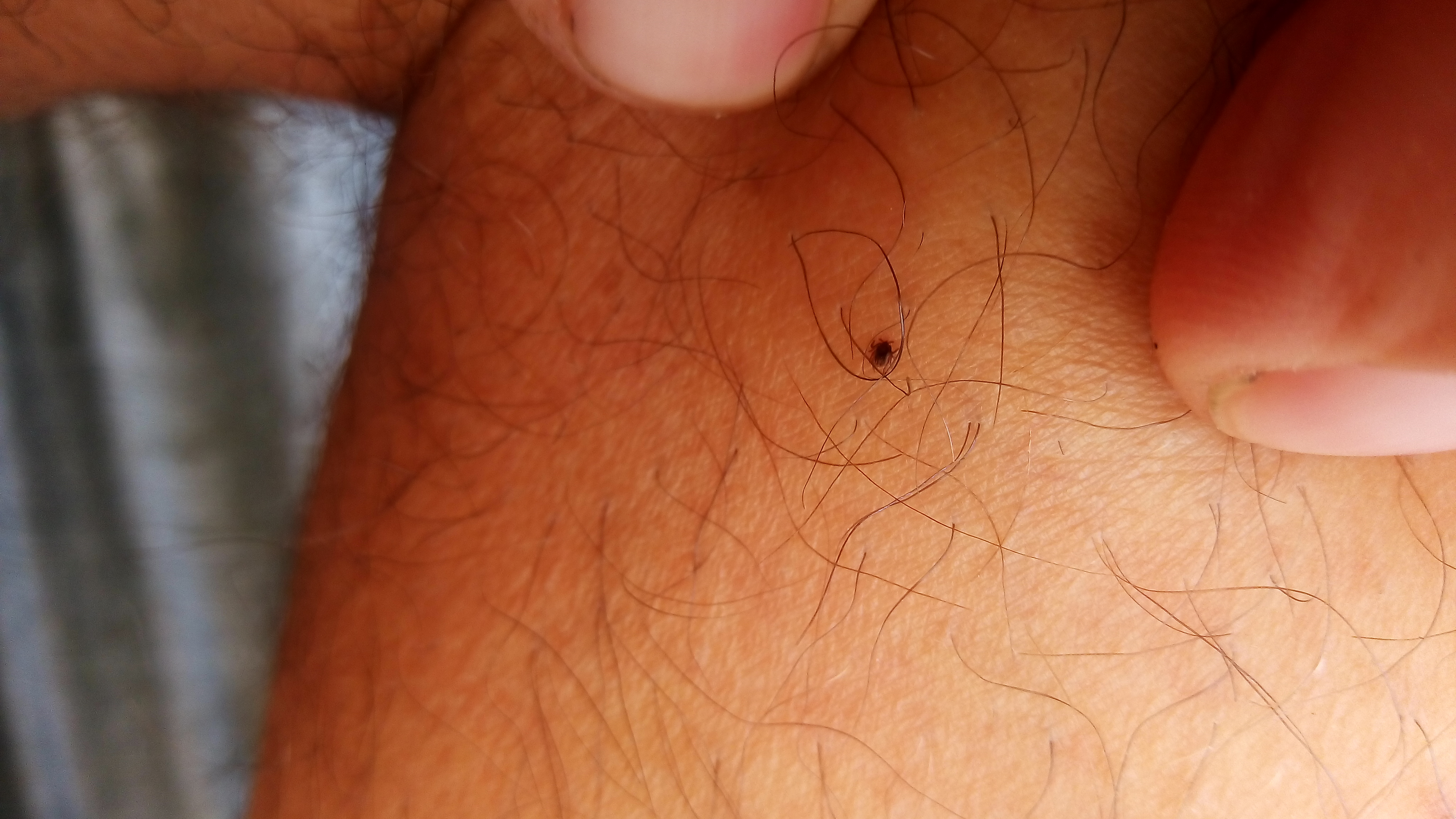 Three Points of the Compass did not feel this embedded tick. It was only when carrying out a body check in the tent at the end of the day that it was found and safely removed with the O’Tom Tick Twister
