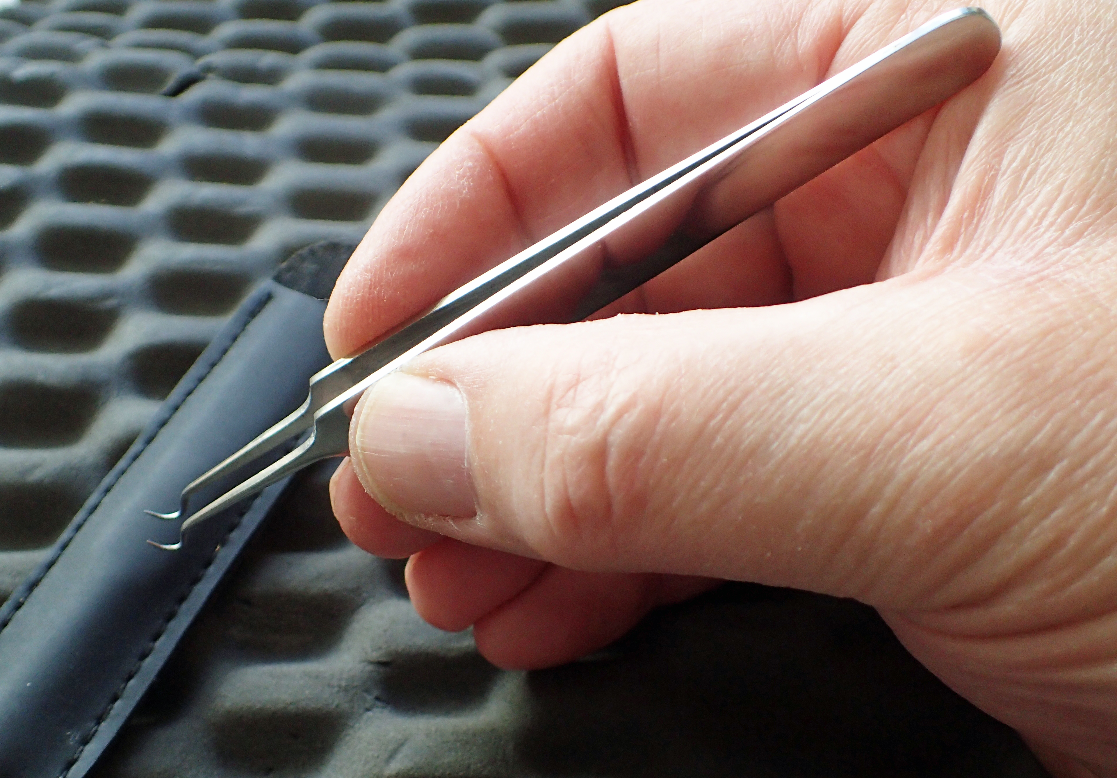 Metal tweezers have the advantage of being both robust and all are capable of being sterilised by dropping in to boiling water. With some plastic tweezers there may be a degree of uncertainty as to how boiling water will affect them. If purchasing a pair of large general purpose tweezers for tick removal then they must have fine tips. Those with wide or slanted tips simply will not grip the mouth parts of a tick with the care that is required to ensure the creature does not stress and eject stomach contents.