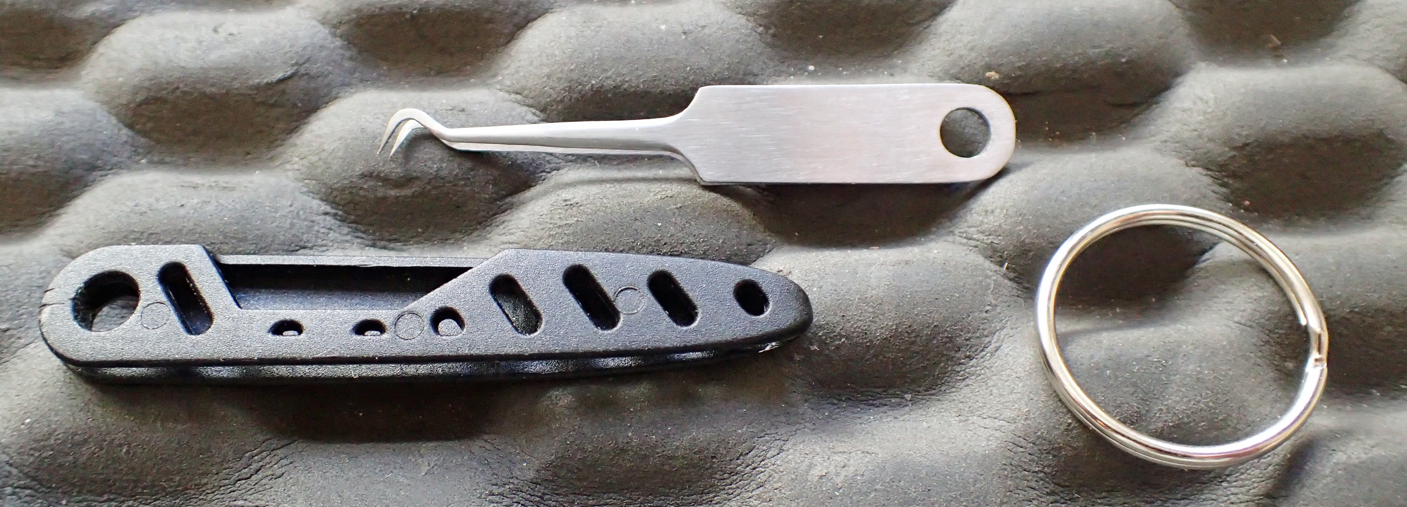 Dismantled Lifesystems keychain tick tweers- tweers: 3.0g, case: 1.4g, keyring: 1.9g
