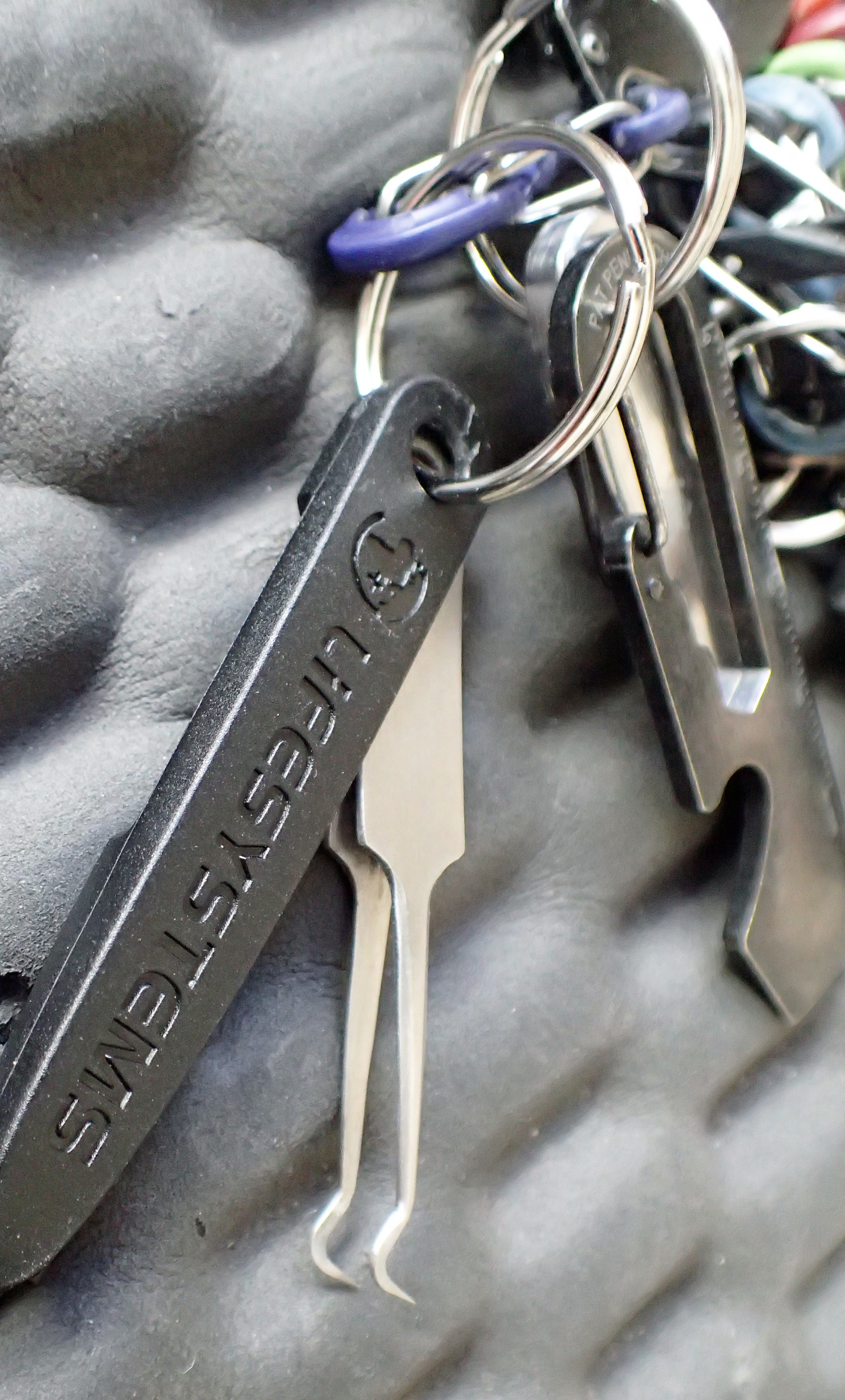 The Lifesystems small and dedicated tick removal tool is designed to fit a keychain. The tweezers themselves slot into a plastic case cover that both protects the fine tips and, to a degree, keeps them clean. The springiness in the tweezers prevents them sliding out of the protective case when being carried.