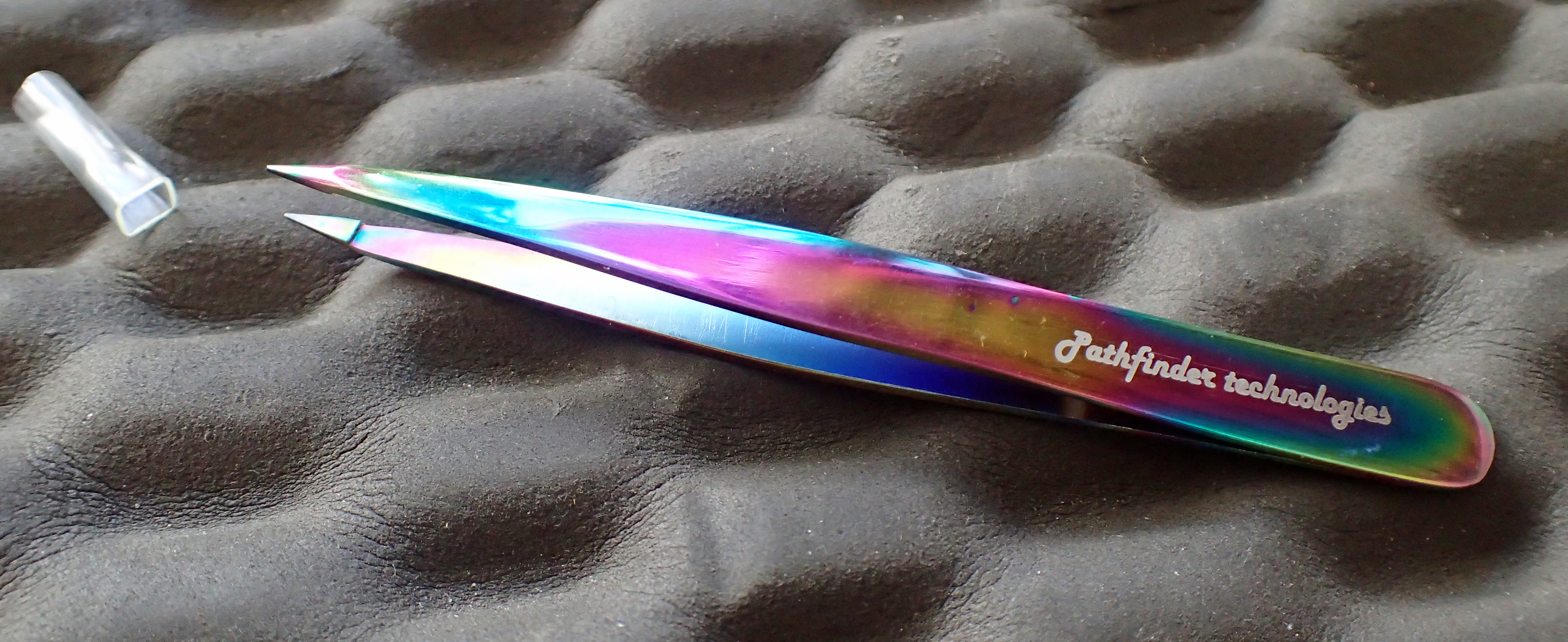 Small, titanium, fine tip tweezers: 10.3g (plus 0.1g for plastic tip guard)