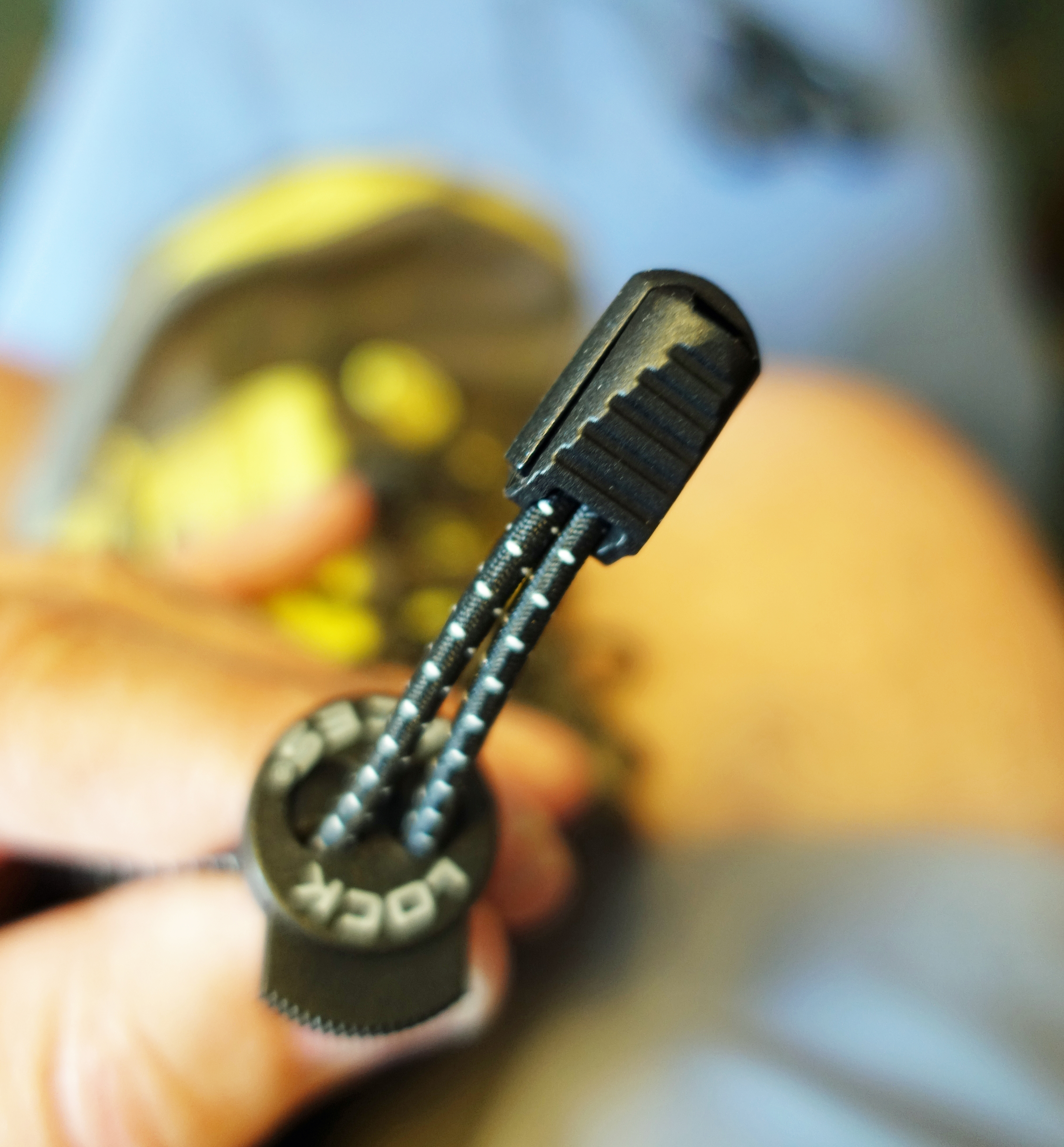 Once passed through the double eyelet lock slide, trim lace to required length, seal off the ends with a lighter