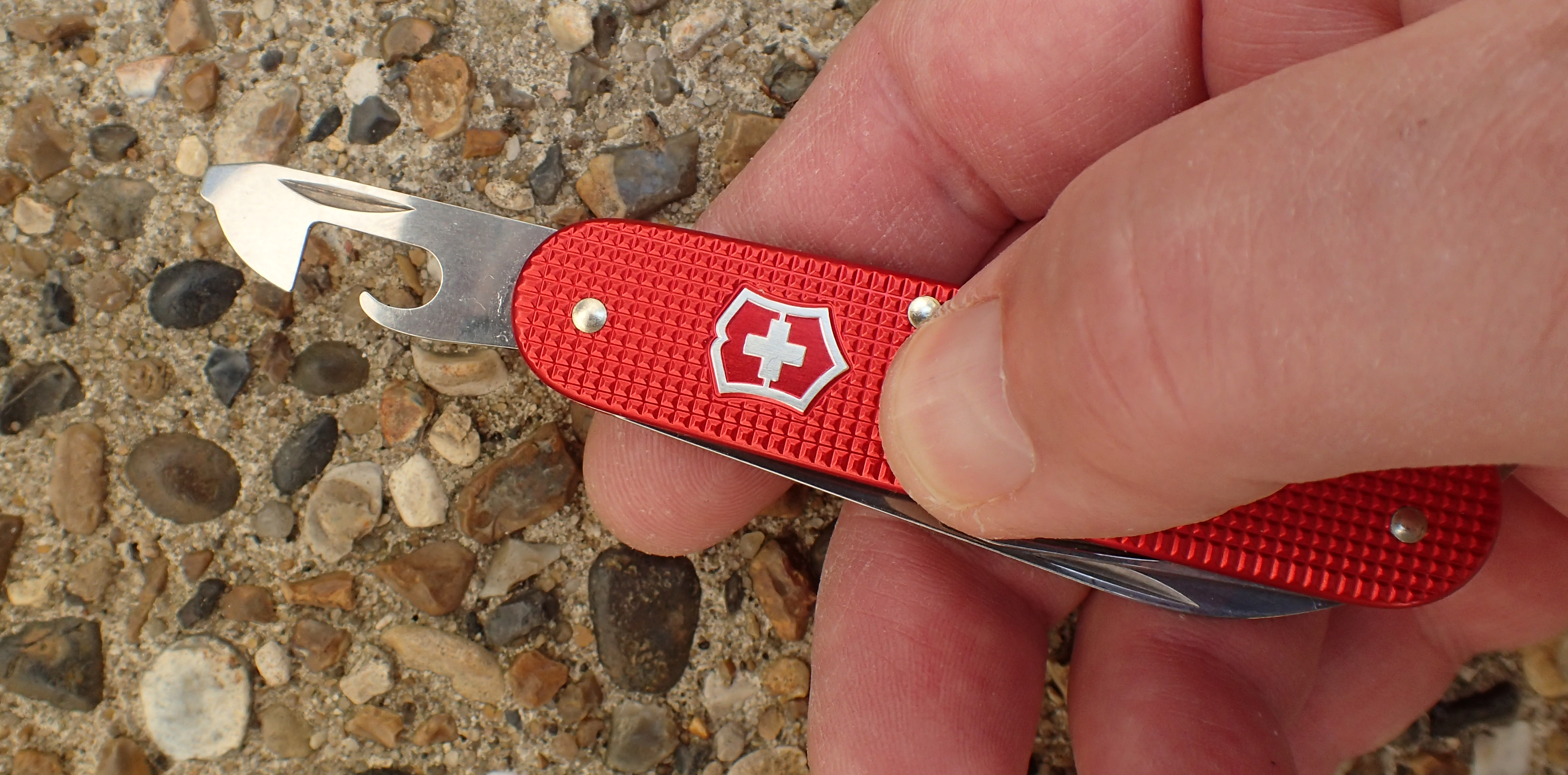 The 84mm Victorinox Alox Cadet weighs 45.9g and includes a really efficient tin opener