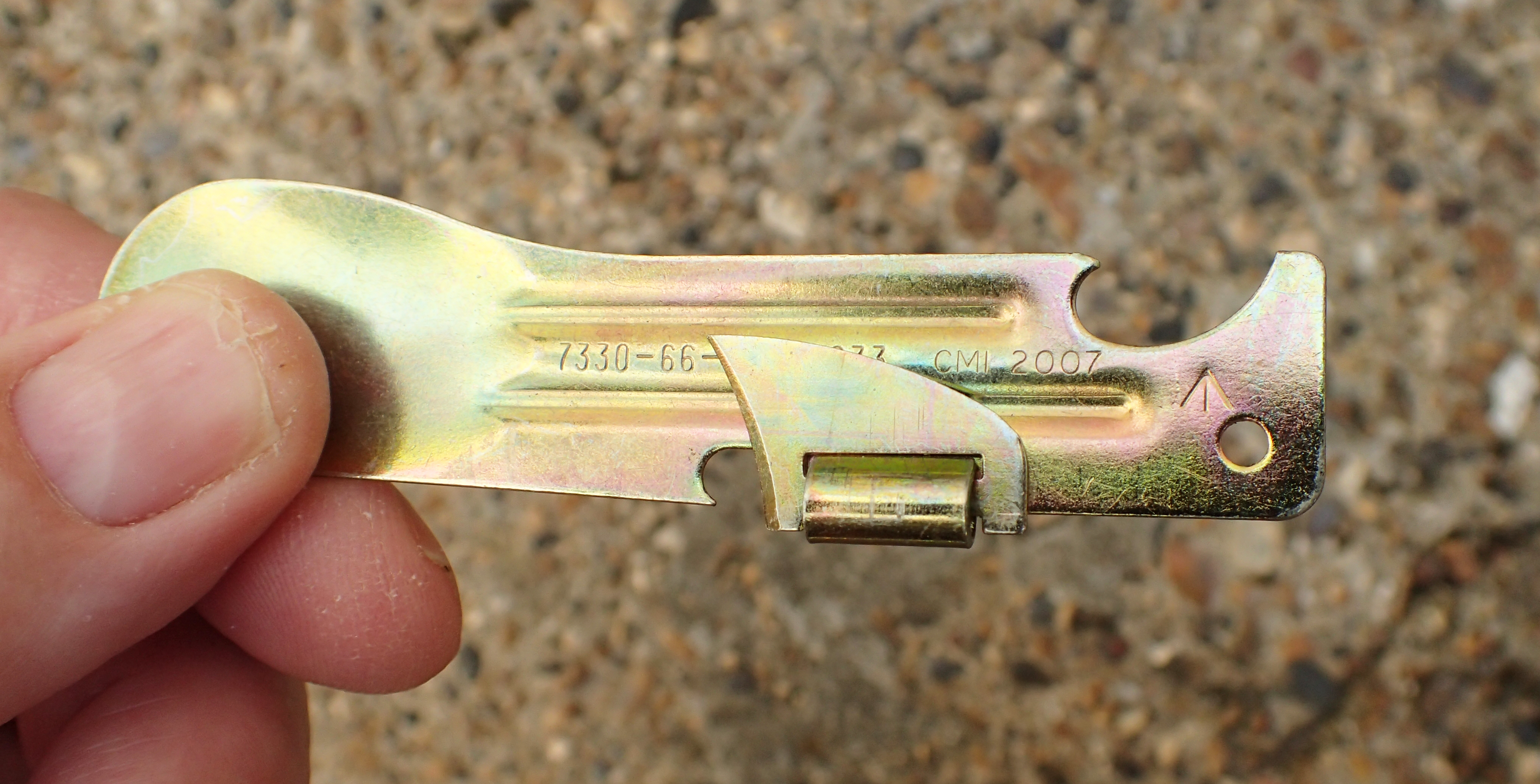 When it comes to lightweight openers, the military have our backs. And it is to the various tin/can openers that have been produced by the armies of the world that the backpacker should turn. I seem to have an assortment of these around the house and have pulled together what I could find for the header photo above. One I won’t be covering is the large Czechoslovakian Army issue ‘Perfex’ opener shown above. While well made and effective, there are simply too many alternatives to this folding 26g tin and bottle opener.