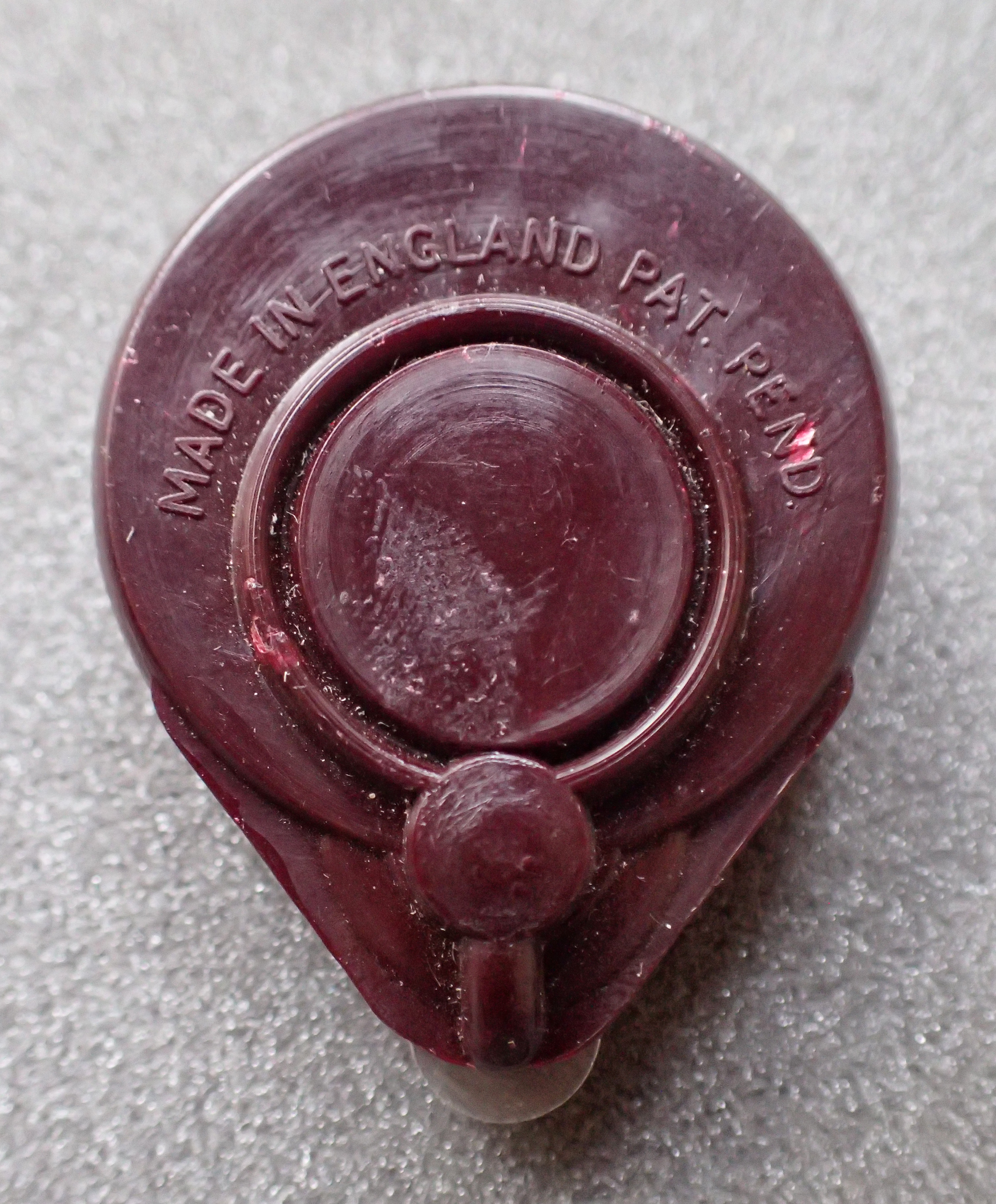 MADE IN ENGLAND PAT. PEND. | small text, in case recess |
