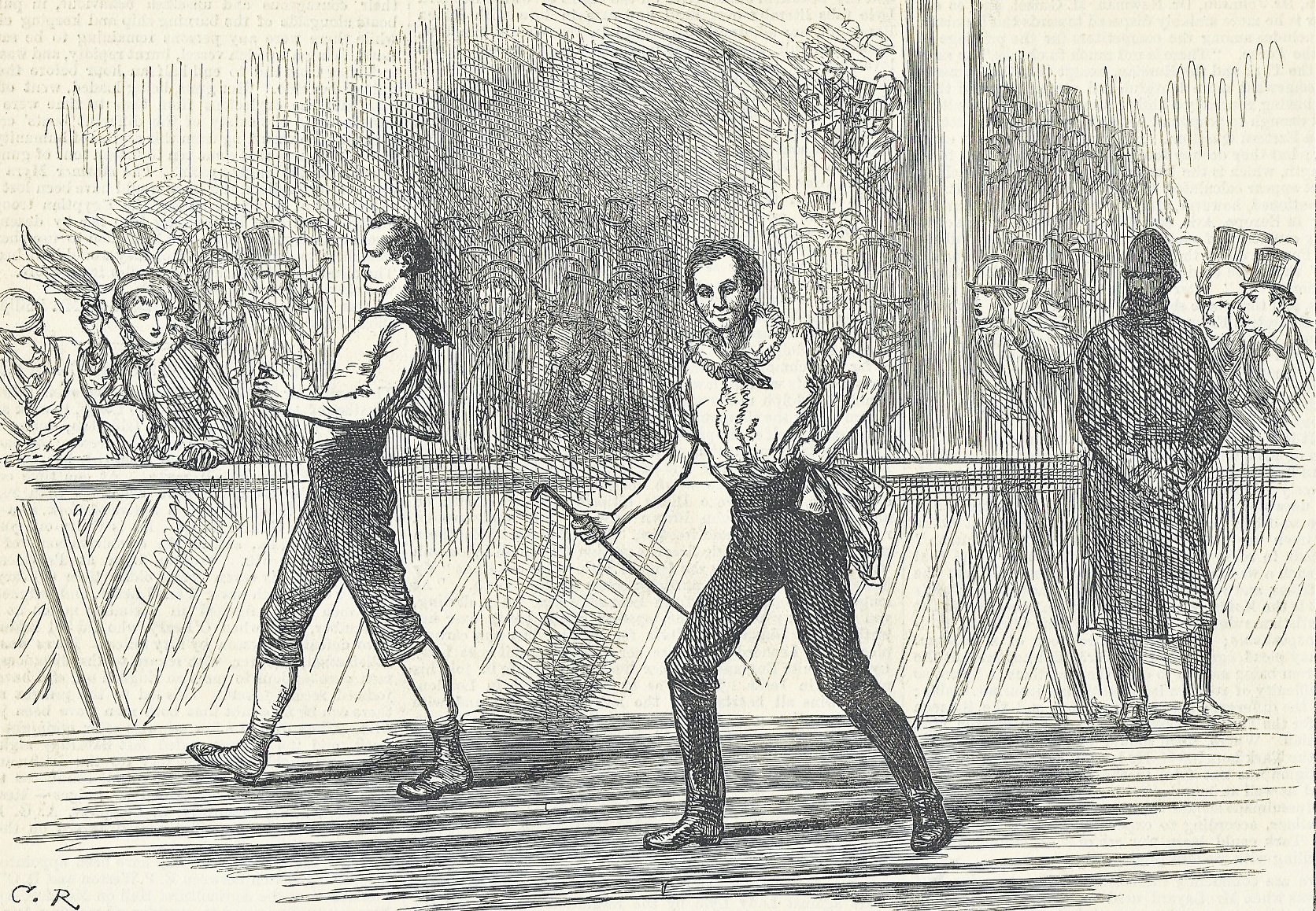 Agricultural Halls, Islington. The two great pedestrians- O’Leary pitted against Weston over a six day 500 mile race. London Illustrated News, 14 April 1877