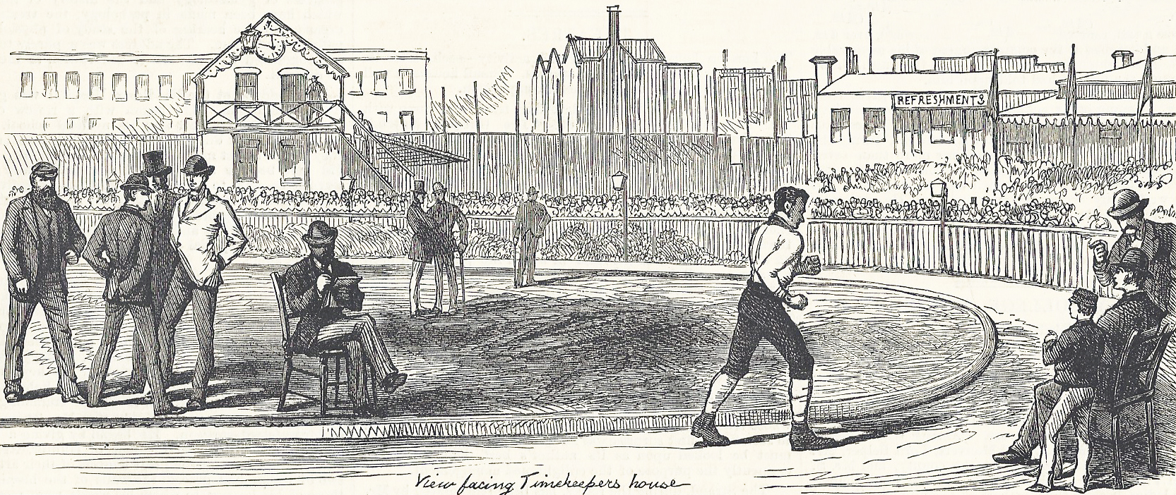 Some of the more accomplished pedestrians became celebrities. The ‘sport’ of pedestrianism had already crossed to the US and as a result challenge matches between celebrity walkers were staged. One in particular was the 1877 match between two superstars of the time.