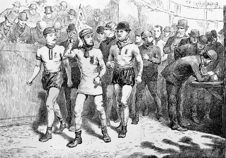 There was also a new kid on the block, the growing popularity of bicycles in the Victorian era quickly resulted in staged races. Spectators could now choose between watching the familiar- athletes steadily walking round a circuit or road route, or the frenetic peddling of race cyclists, with the associated risk of crashes and tumbles.