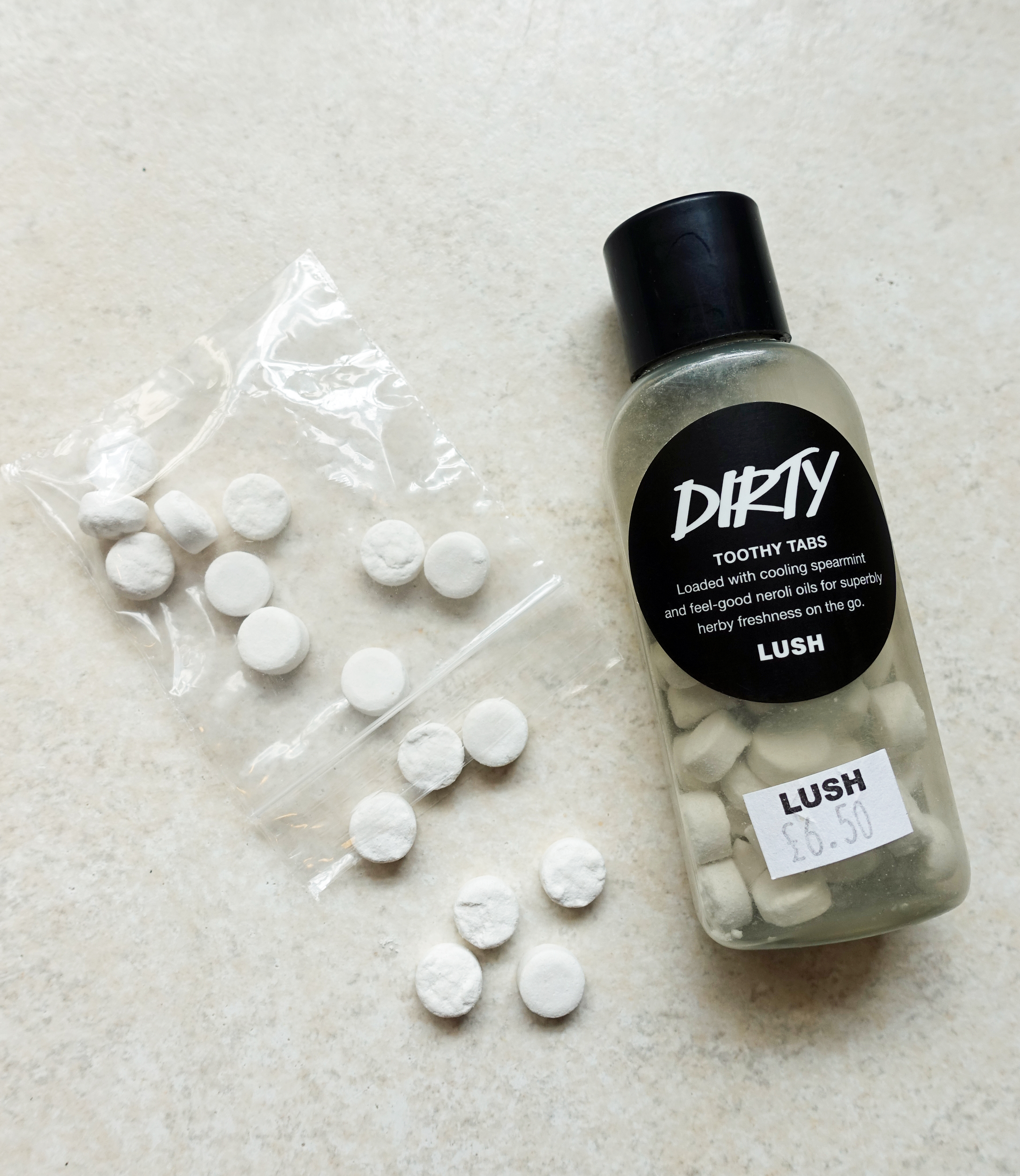 Oral hygiene is an absolute necessity. I am not going to attempt to scrub back teeth with a pathetic little half brush with the handle chopped off, or one of the little brush heads that you slide over a finger tip. I want my none too clean hands outside my mouth, so use a full size toothbrush. The weight of this child’s bamboo brush is ridiculous at only 5g and despite their mostly recyclable construction, last well. There is no need to take a tube of toothpaste, or dry it out before snipping pea sized lengths in advance. High Street cosmetics shop Lush sell a range of toothy tabs perfect for backpacking. I take a number of these in a baggie. I have carried a whole bottle of them on multi-week hikes.