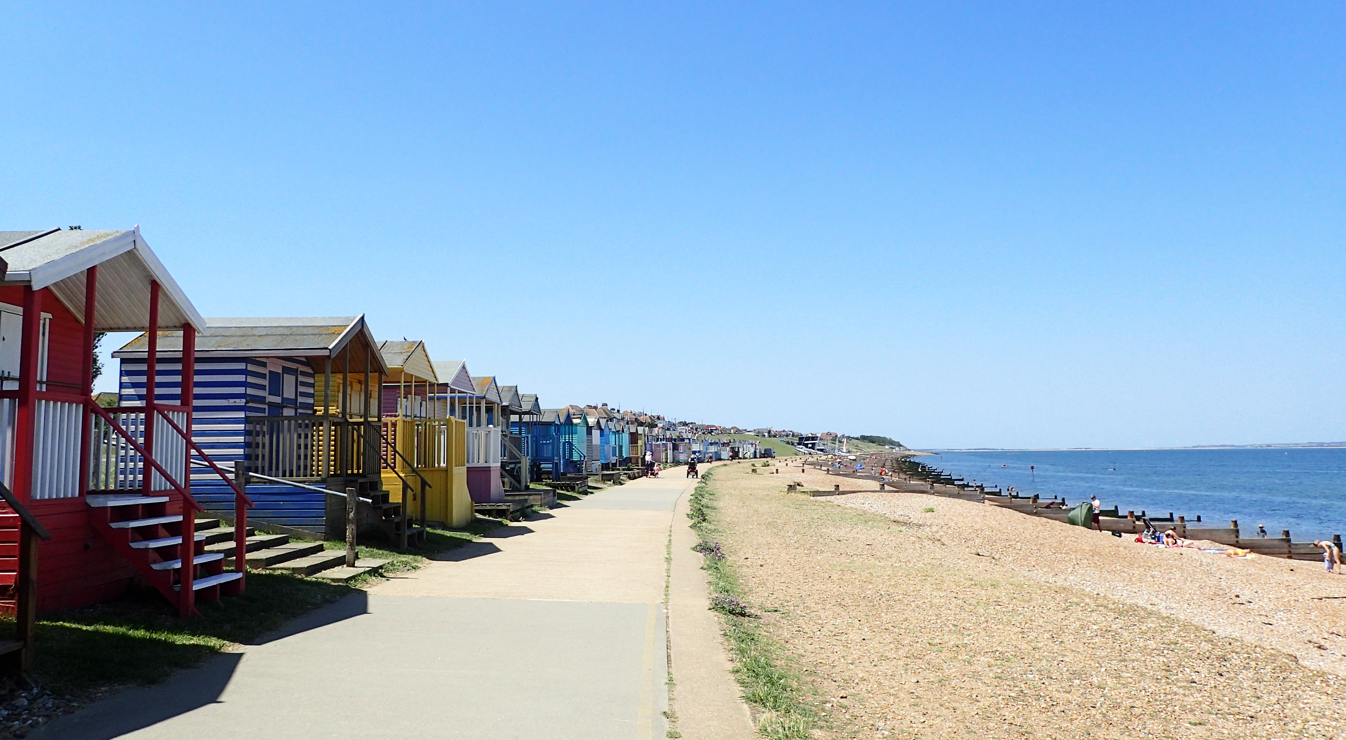 Approaching Herne Bay the Saxon Shore Way begins to pass brightly painted beach huts, now selling for tens of thousands of pounds each