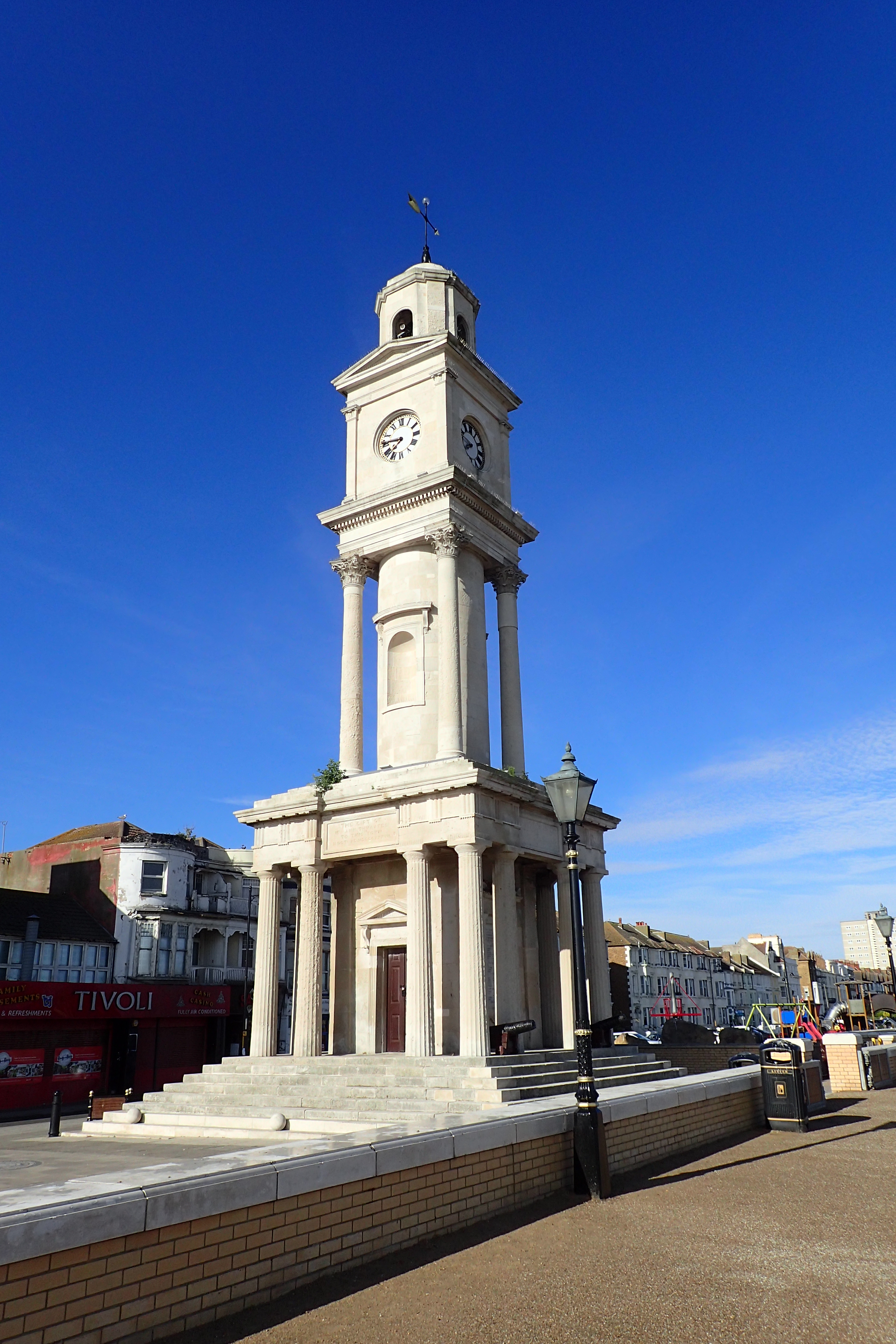 I pottered around Herne Bay a little before properly striking off as not only was I in search of a cup of tea and a bacon sarnie (unlucky in both), but it is also a lovely espanade and the clock tower alone demands a little time to admire it. Built in 1837 it is the oldest purpose-built, free-standing clock tower in the UK. It stands 85 feet (26m) tall including the weather vane. The two canons standing at its base were dredged from the sea bed when the town pier was being completed in 1899. Possibly Dutch in origin, they used to fire blanks as a fog warning to shipping.