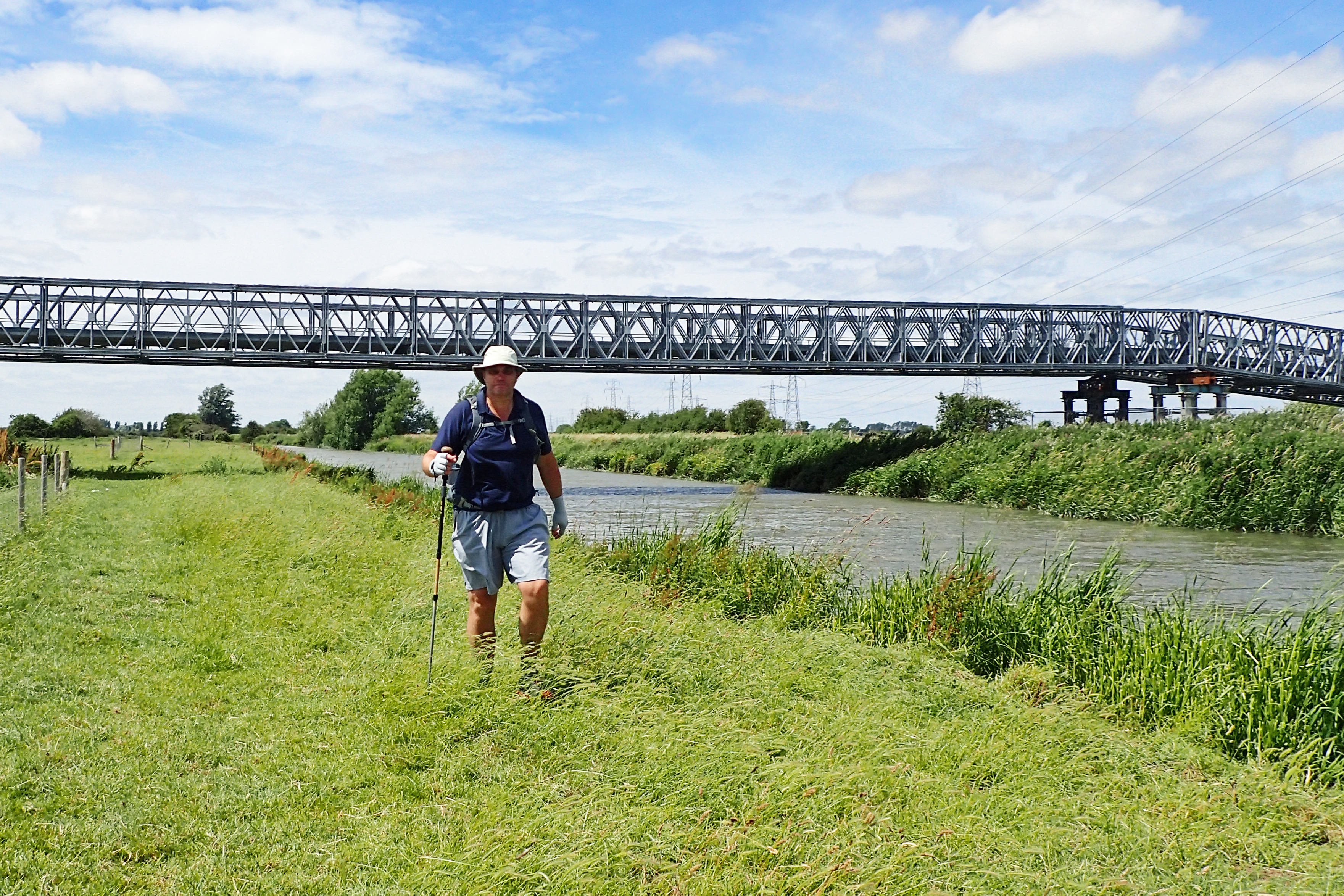 From there it was another couple of hours of pleasant quiet walking all the way to Richborough Power Station with no-one beside inquisitive (perhaps too inquisitive) cows and skitterish sheep as occasional company. We all find interest in different things and Three Points of the Compass paused at two large Bailey Bridges that had been built across the River Stour for the farmer to move his cows across. I cast a critical eye over these as I have built dozens of them in another life decades previous.