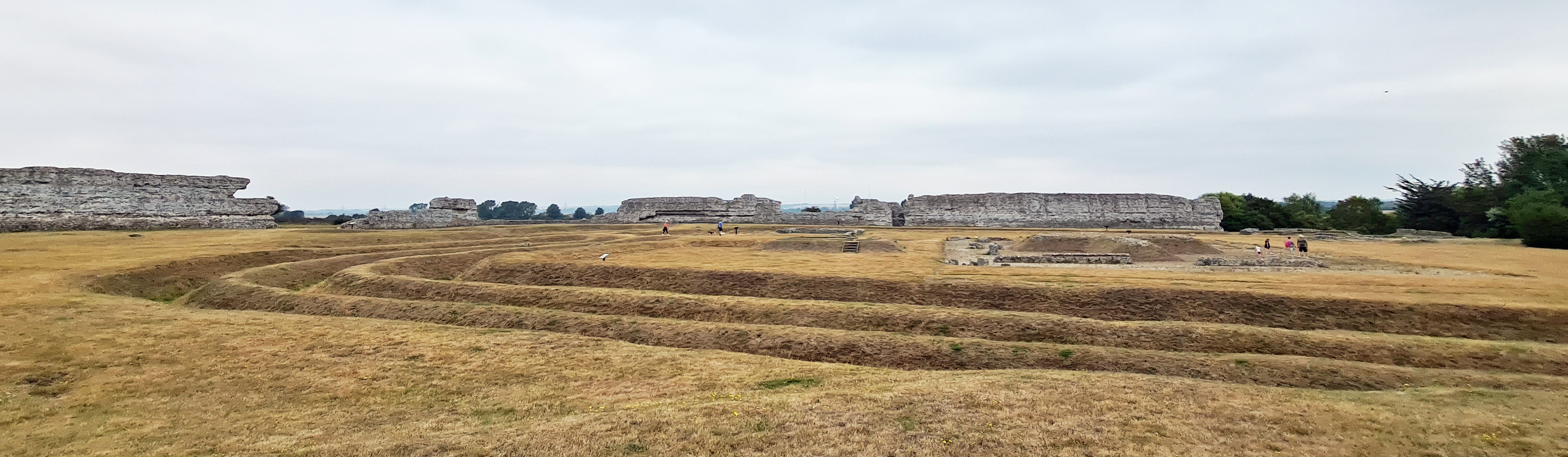 The Romans occupied Richborough from AD43 and the extensive and fascinating remains of the Roman fort are well worth exploring. The site was altered considerably over the centuries. Here, mid-thirteenth century ditches cut right through the foundations of second century buildings