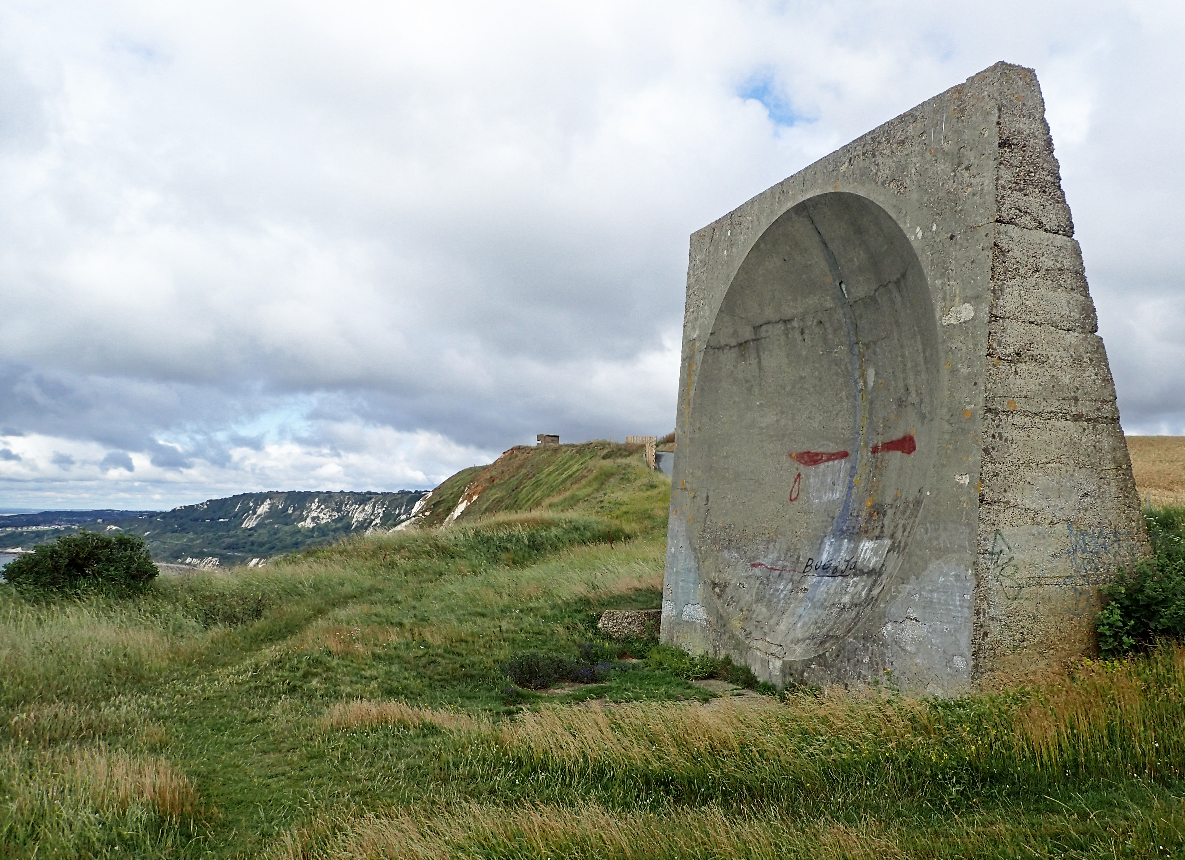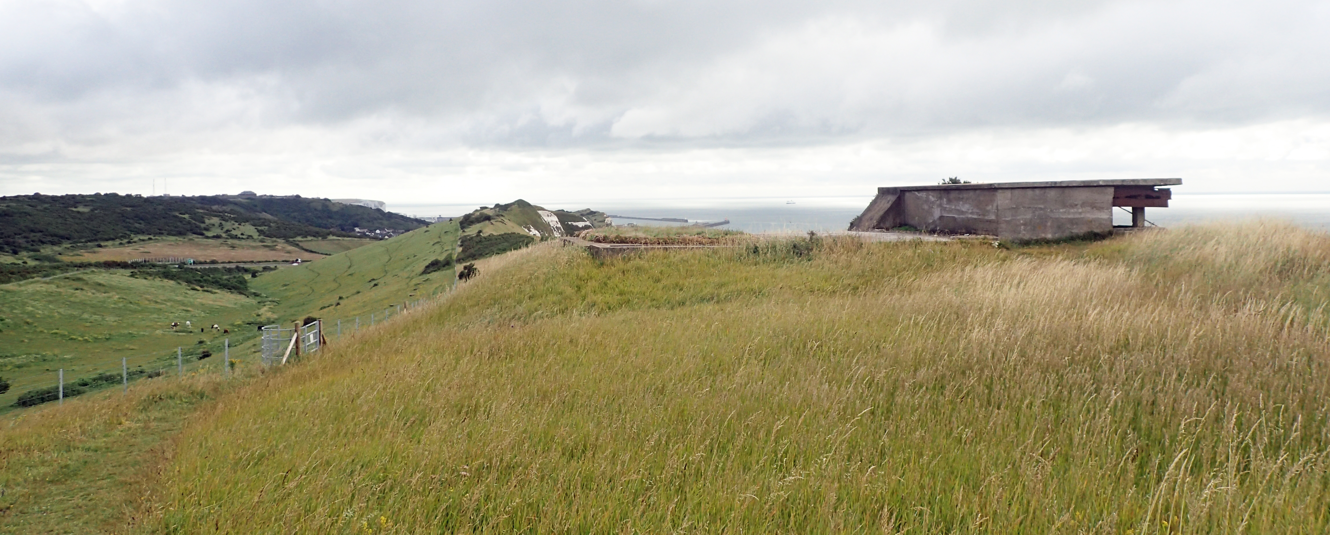 Military look-outs from World War II are dotted all the way along the cliffs south west of Dover, though most are now overlooking the far newer Samphire Hoe Country Park, constructed from spoil dug from the Channel Tunnel