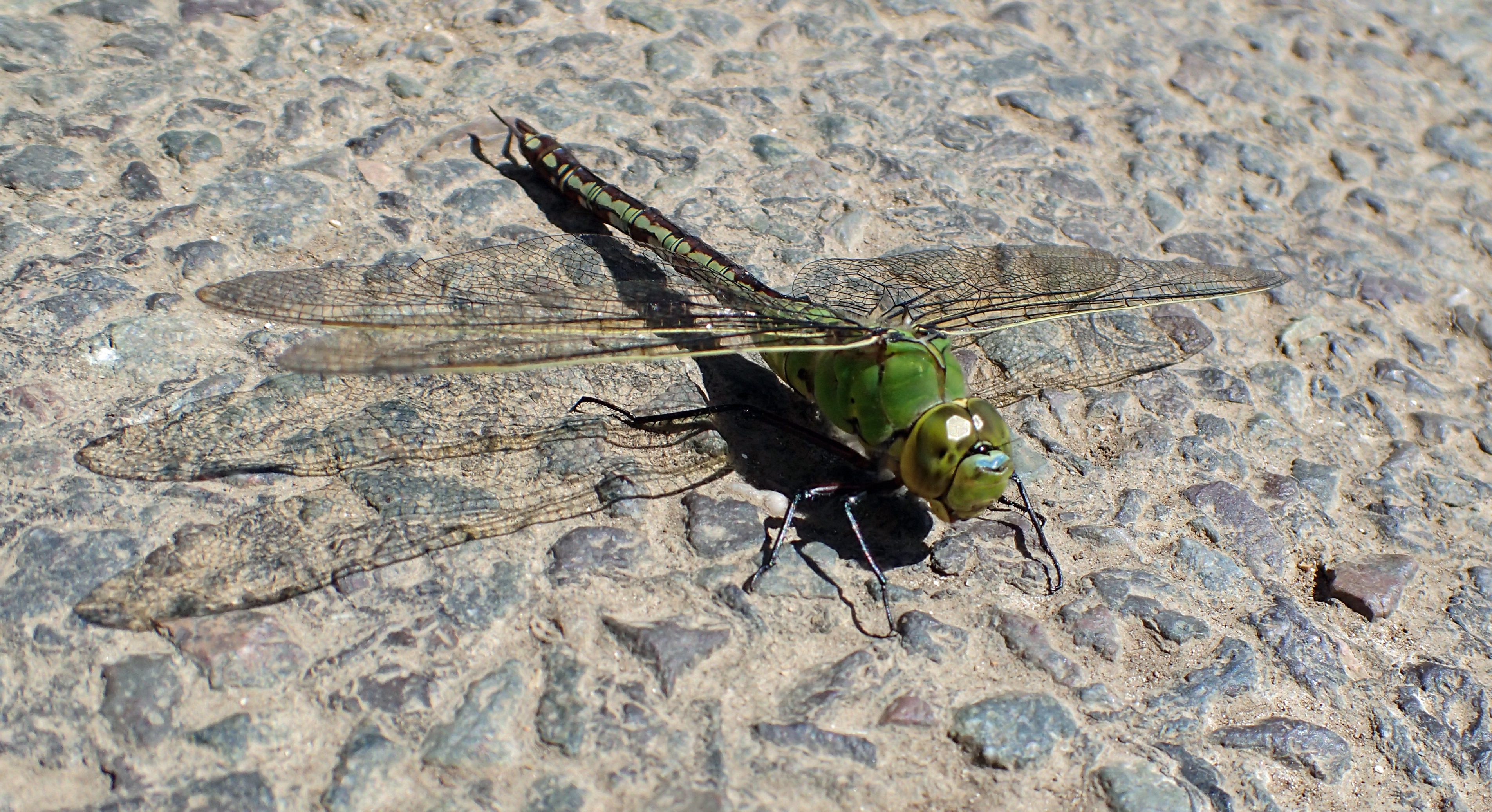 Resting female Emperor Dragonfly (Anax imperator), aggressive, and the largest of the hawker dragonflies