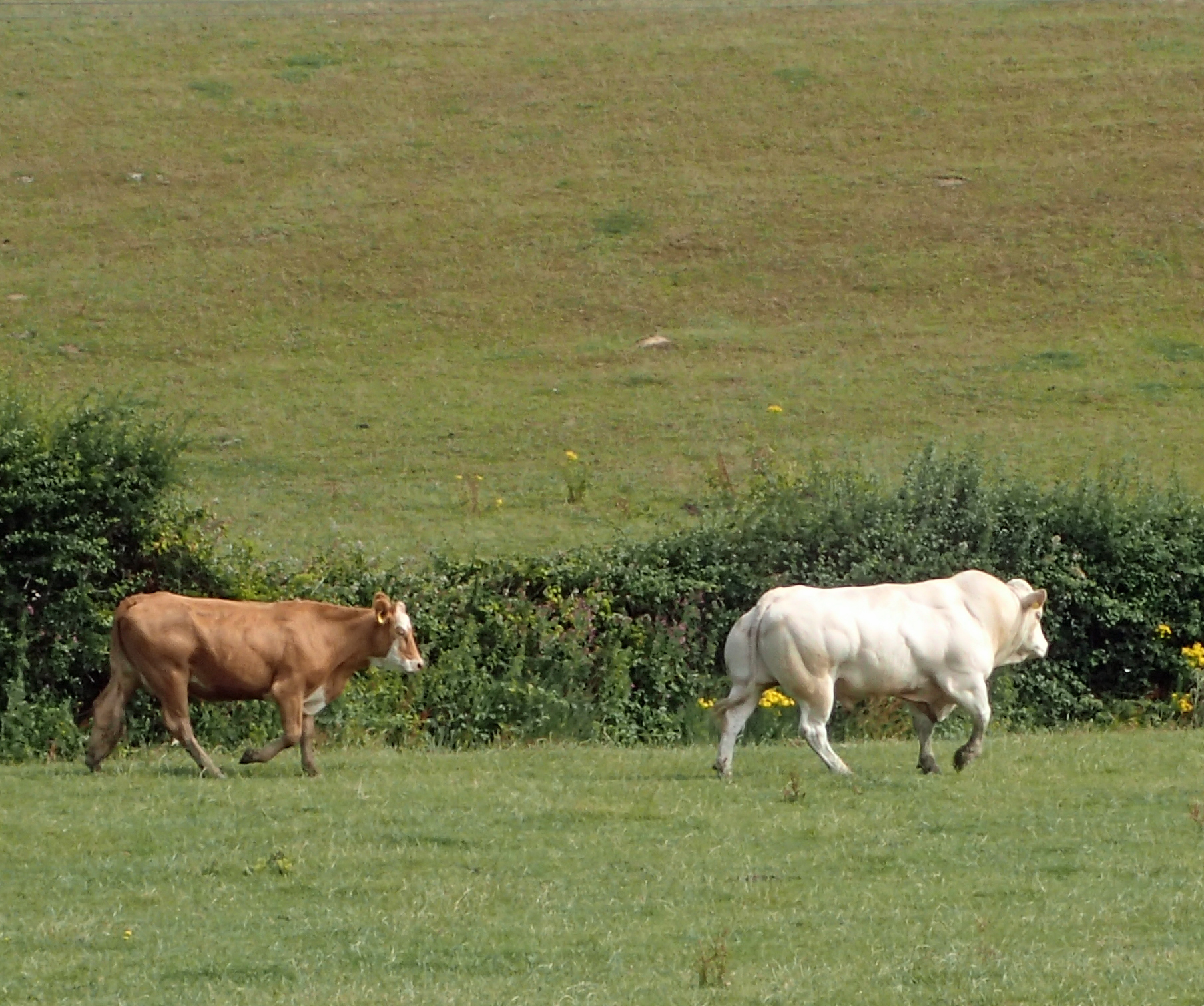 There were a lot of cows around and one some five hundred metres away decided I was of great interest and started, literally, to gallop toward me. I have never seen a cow move at that speed. Nervously I hopped over a fence and it slowed to a simple trot as it neared. It lost interest, I hopped back over the wire, carried on, and immediately attracted the attention of a large bull that decided to take a closer look. I am not normally bothered by bovine presence but these looked to be too inquisitive.