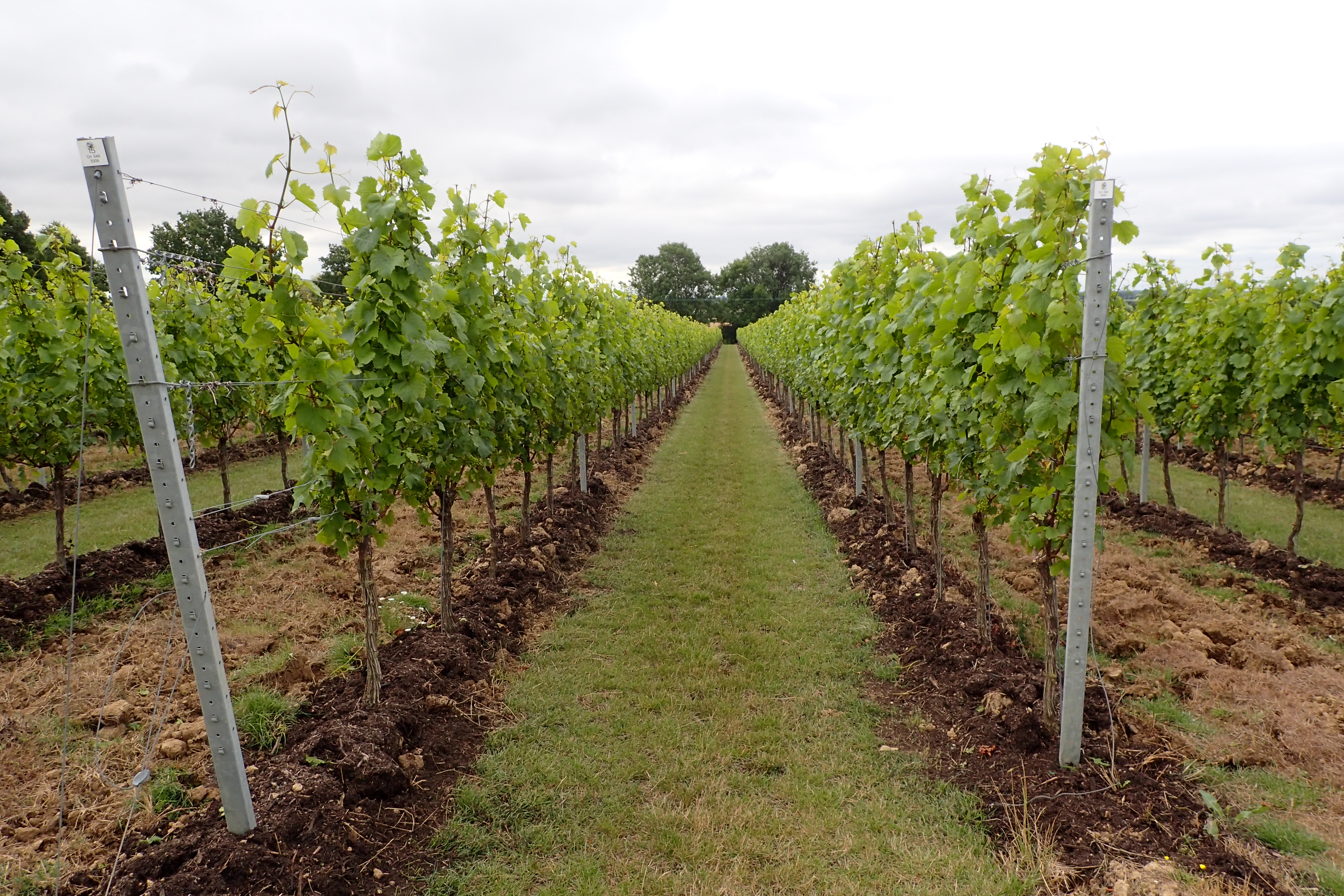 The gently sloping south facing slopes in this part of the country have been farmed for a thousand years. I do wonder if the Romans had attemped a little grape growing when they were occupying the land here. Today, the Gusbourne estate extends over more than two hundred acres of vineyard and the Saxon Shore Way marches straight through the middle of them- Chardonnay, Pinot Noir and Pinot Meunier grapes produce award winning wines. The estate is immaculate. Frosts can occur here though and frost fans are used in the lower fields to protect the buds in April.