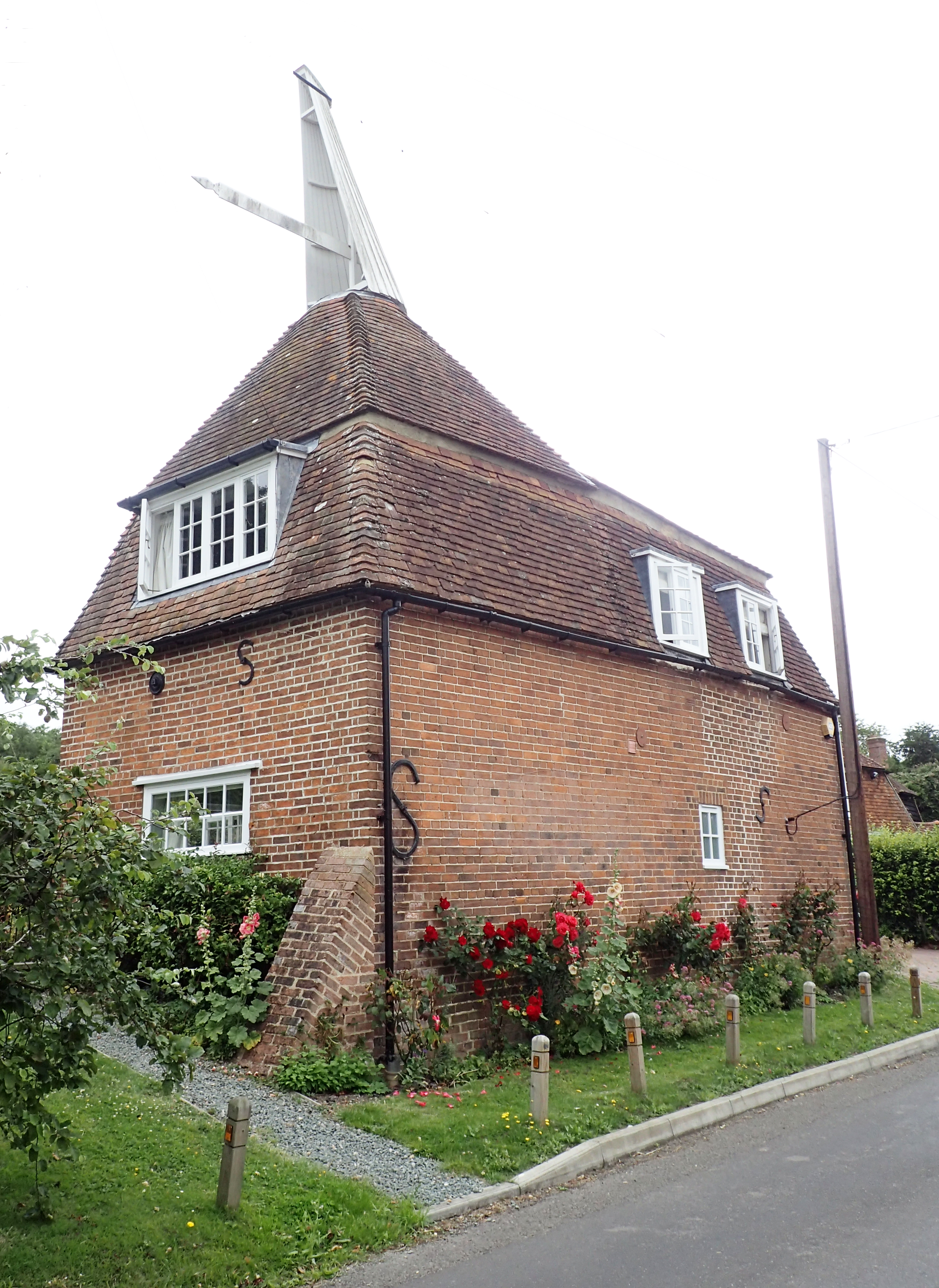 Oast house at Stone in Oxney, now converted to a residential dwelling. The corners of these older square oasts developed cold spots and circular oasts proved more efficient