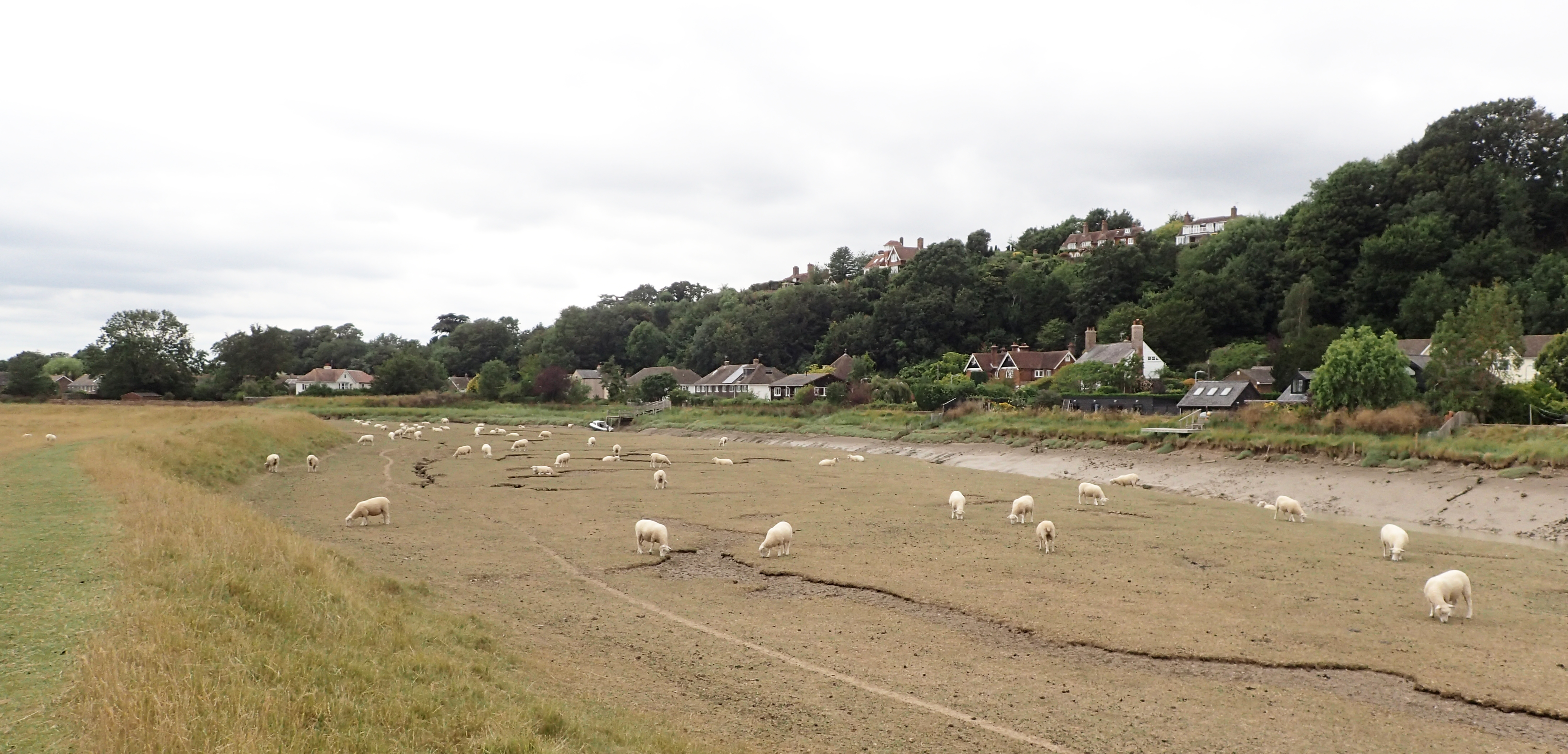 The canal joins the River Rother and becomes tidal but the path at its edge is still easy going. I began to see the odd dogwalker, which felt a little strange as I had barely seen anyone on the actual trail for the last few days. With low water the muddy edges were exposed and sheep from the grazing marshes were wandering the tideline, picking off seaweed, spike grass and samphire. Their meat must taste fantastic. The saltmarsh found here is a rare habitat in Sussex. When I reached Rye the town was busy. Lots of traffic, lots of people. Yet again the chip shop was closed so I never hung around as I had a couple of changes to make on my rail journey home. I was now in East Sussex having left Kent. Another thirteen miles done and my final day on trail tomorrow.
