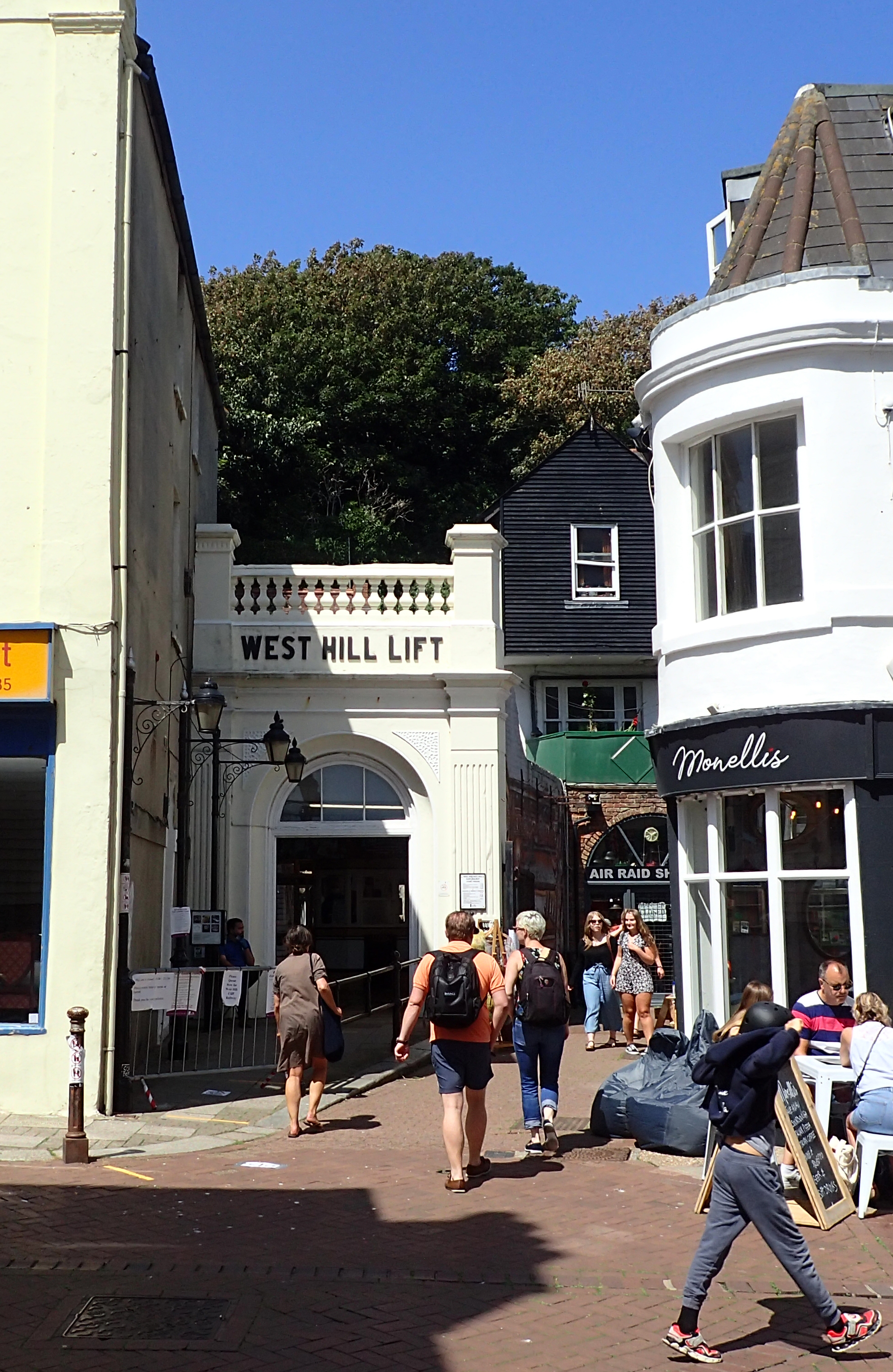 I had one more treat before walking to the railway station and making my way home. The West Cliff funicular is tucked away off the main drag, but it was open. Despite the new railings installed to control visitor numbers, I was the only one travelling up and down the 19th century cliff railway. Building work began in 1889 and was completed 1891. It travels up through a brick lined tunnel rather than up the outer surface of the cliff. Originally powered by gas, it has been electric since 1971. A short and smooth ride up and down, I enjoyed it more than I perhaps should.