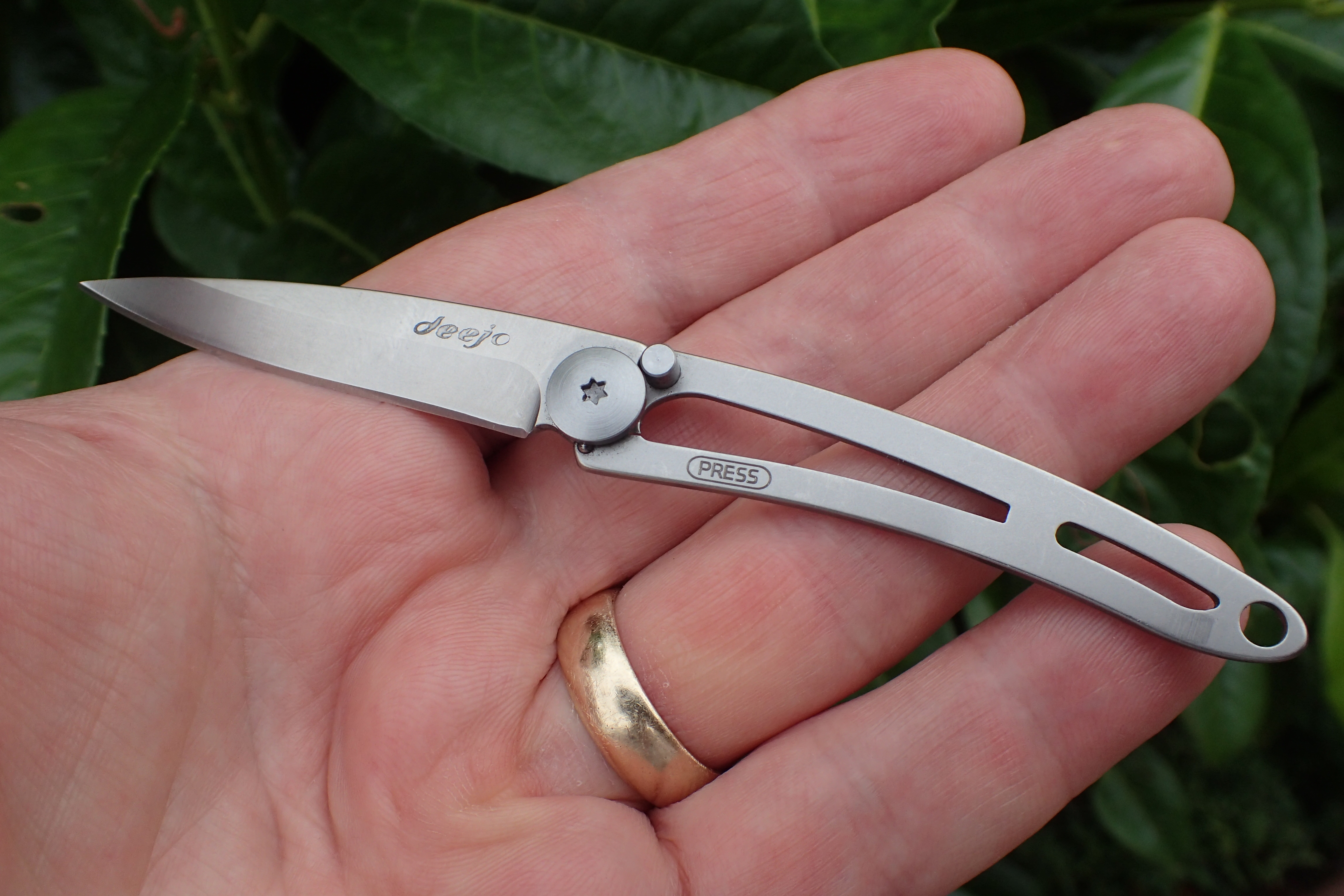 The Deejo 15g is amongst the best of well constructed, lightweight, locking, single blade folders available that is particularly suited for backpacking purposes. A more legally acceptable alternative to this little blade would be one of the smaller Opinel folders. The smallest Opinels are not fitted with a locking ring so comply with UK law. Those knifes also have the option of high carbon steel blades, which rust more easily but hold an edge better. Or choose stainless steel which is more suited to life on trail.