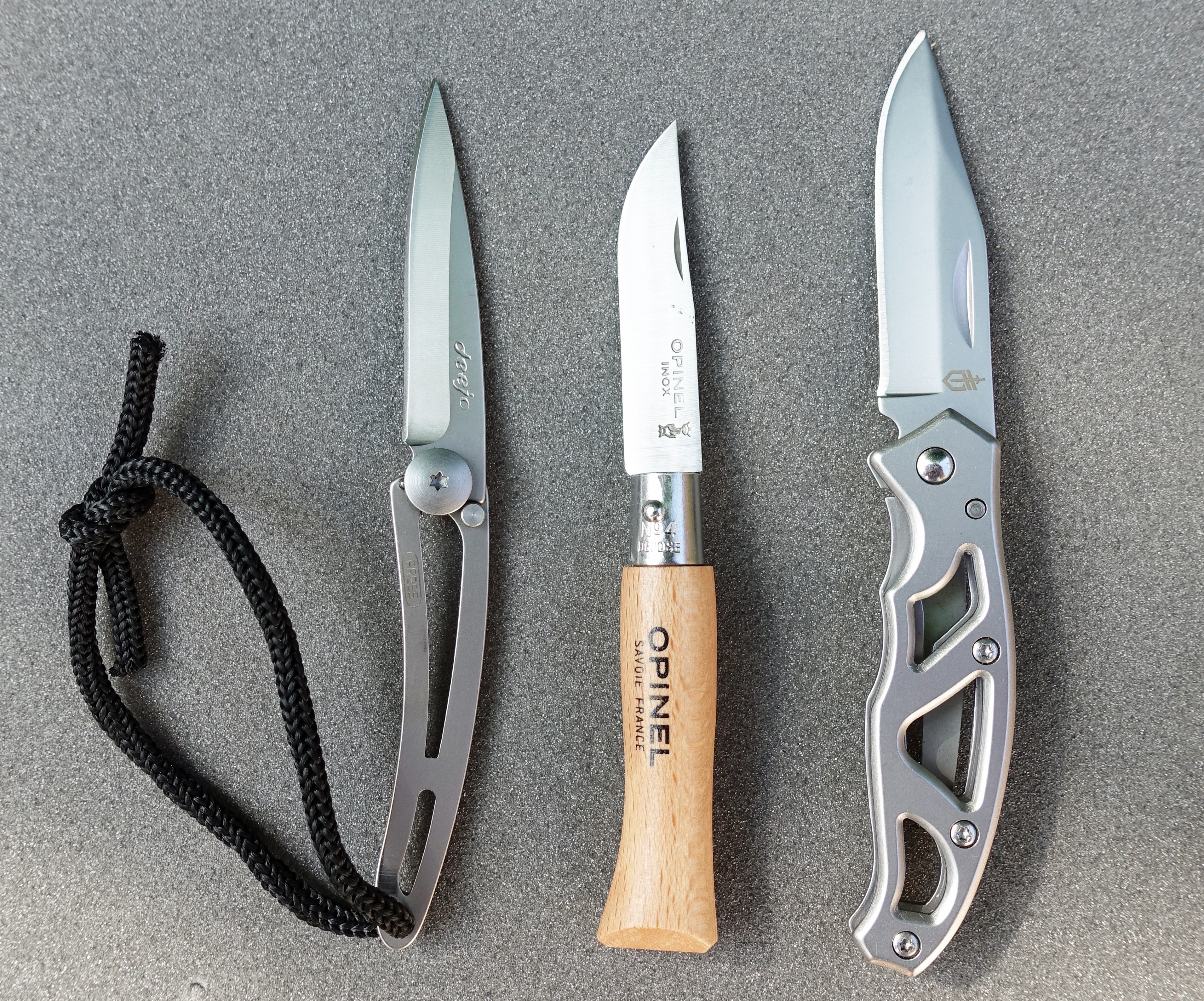 Deejo 15g alongside non-locking 10g Opinel No. 4 and the popular 40g frame lock Gerber Paraframe Mini