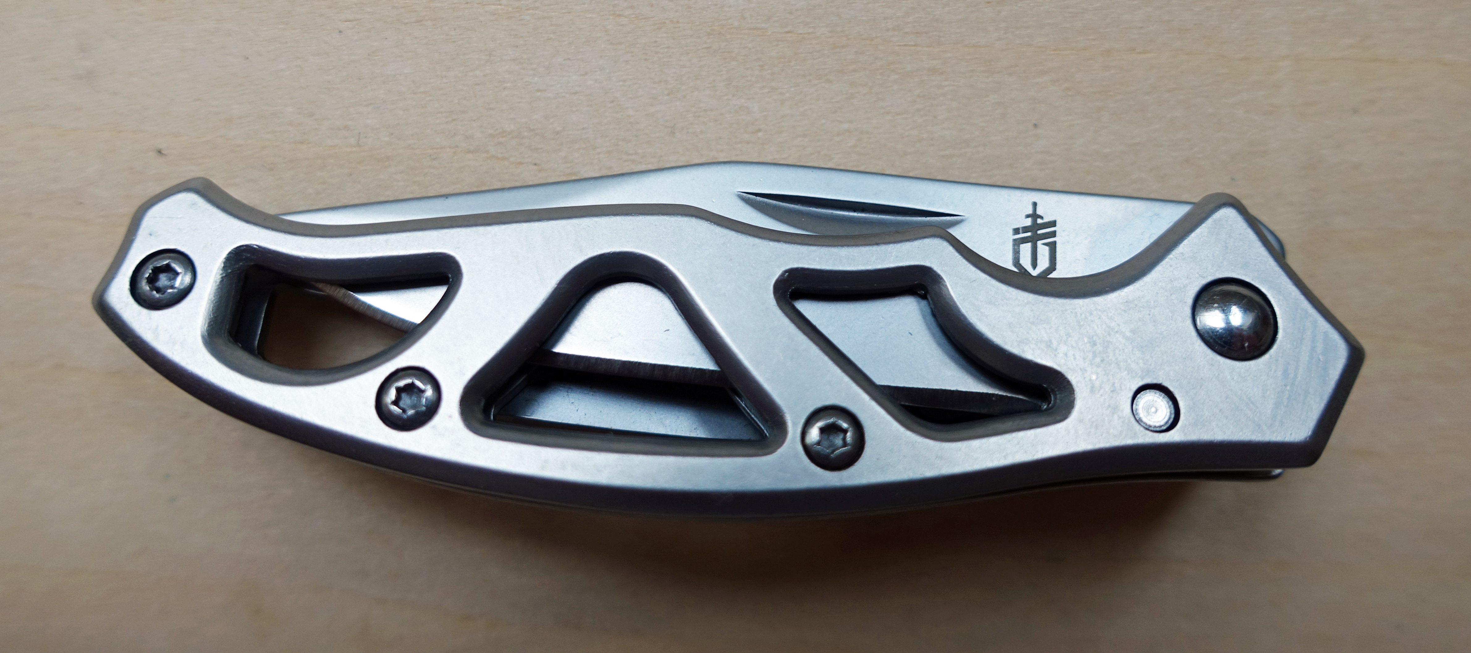 And now we come to the quality of steel used for the blade. Gerber have been annoyingly reticent over the years to divulge exactly what is used in their knives. They simply advertise this blade as ‘high carbon stainless steel’. It is unlikely, particularly for the moderate price, that a particularly high quality steel is used on this knife. It has been suggested that it is 7cr17mov, hardened to 55-57 HRC, which is a ‘middle of the road’ steel used on many cheaper knives. This steel is almost certainly of the 400 range (resistant to corrosion and easy to sharpen), either 420 or 440 series. If the latter, probably 440A, which is a fairly low cost, highly corrosion resistant stainless steel. However Gerber do specify that it is ‘High Carbon’ (HC) steel, pointing toward 420HC, another cheaper steel, that can be brought to a higher hardness than regular 420. This is not a great steel but adequate for such an unassuming knife. If you want a better steel in your knife, be prepared to spend more money.