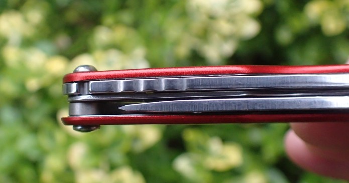 As you can see, there isn’t a great deal to this knife- two different types of blade folding out from attractive anodised aluminum handle scales that are built over a steel frame, that is about it. It can be seen that the blade when folded does not fill all of the space available to it. The blade lengths in the Juice range had been slightly shortened by Leatherman in a second generation so as to make the range compliant with stringent knife laws worldwide and, particularly, to comply with what were thought at the time, would be the future TSA blade requirements.