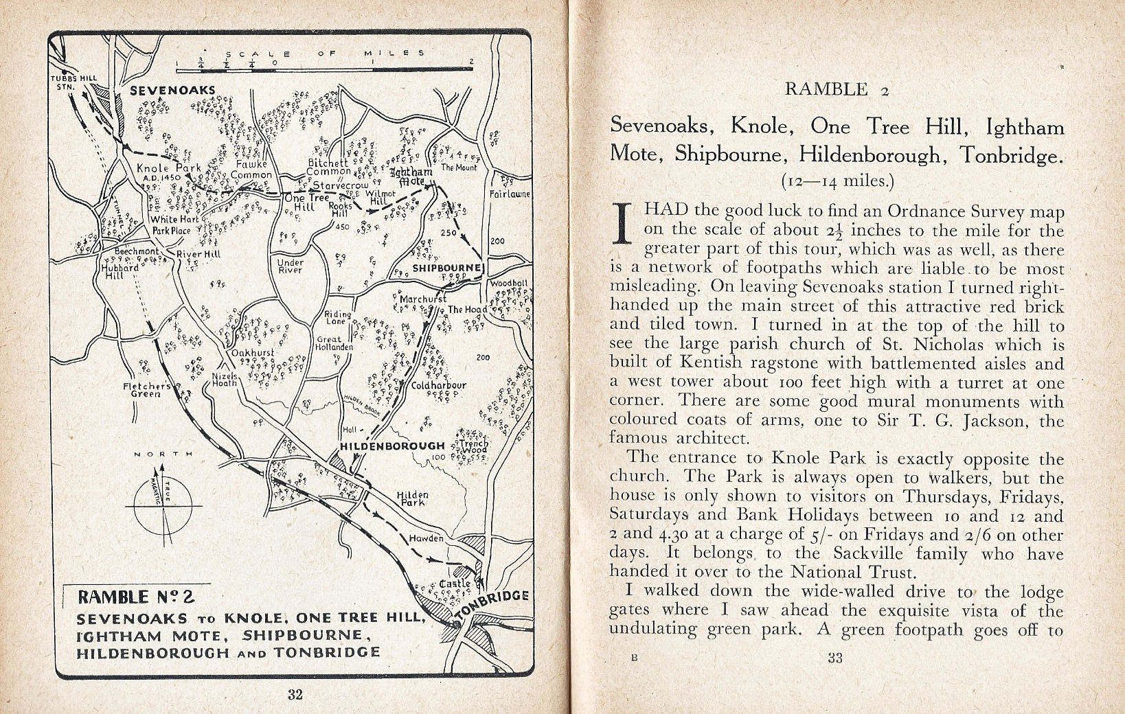 14 mile walk from Sevenoaks to Tonbridge. Ramble No. 2 from Southern Rambles, Kent, 1950