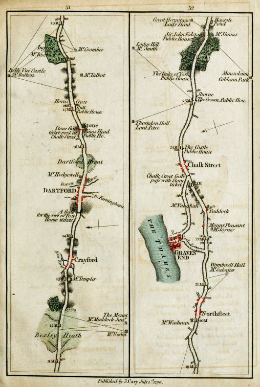 Maps 51 and 52 from John Carys- Survey of the High Roads from London, 1790