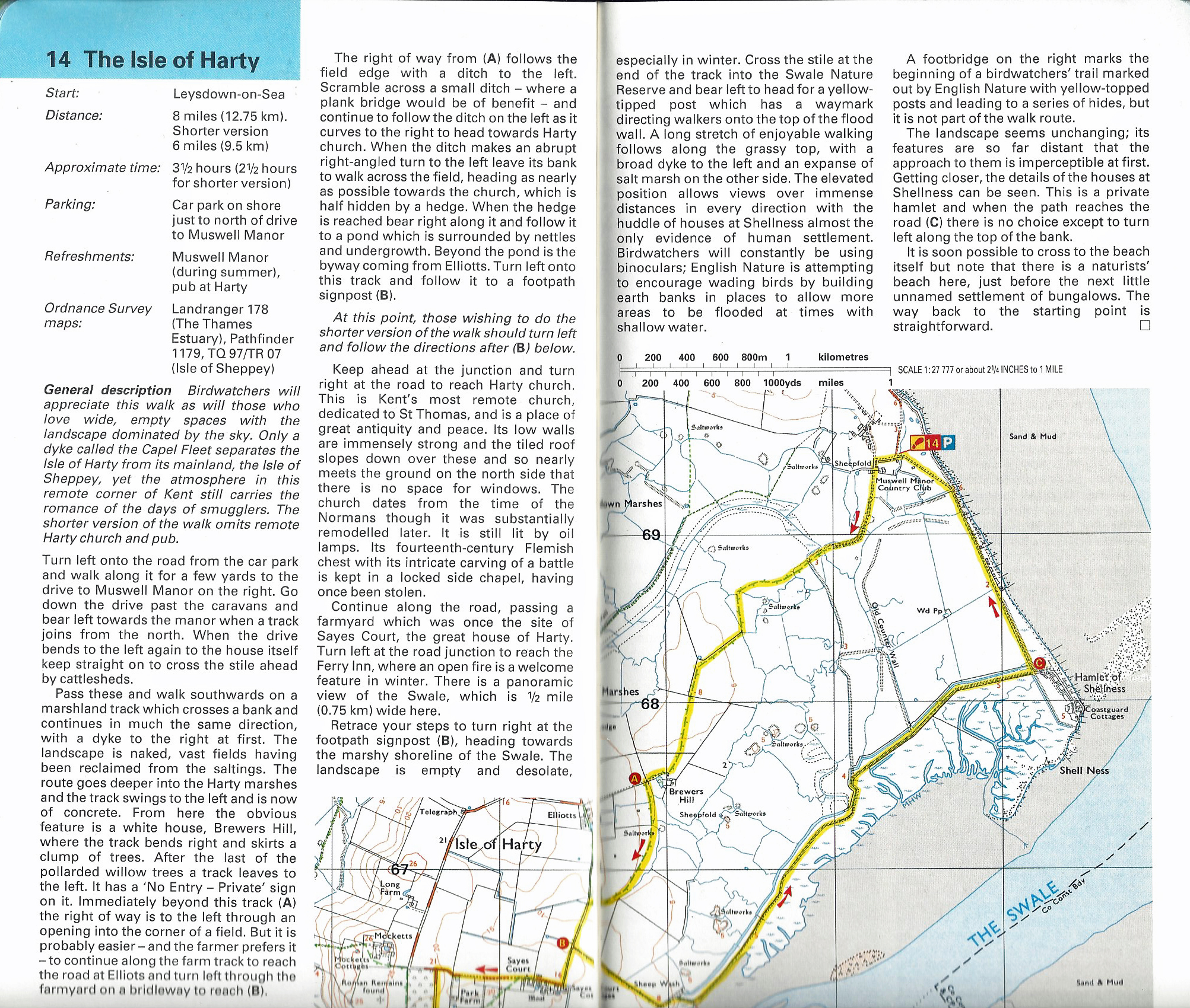 The western end of the Isle of Sheppey is a popular destination for guide book compilers. This is route 14 from 1993 Kent Walks Pathfinder Guide. Three Points of the Compass wrote of a self-devised walk there in summer 2020.