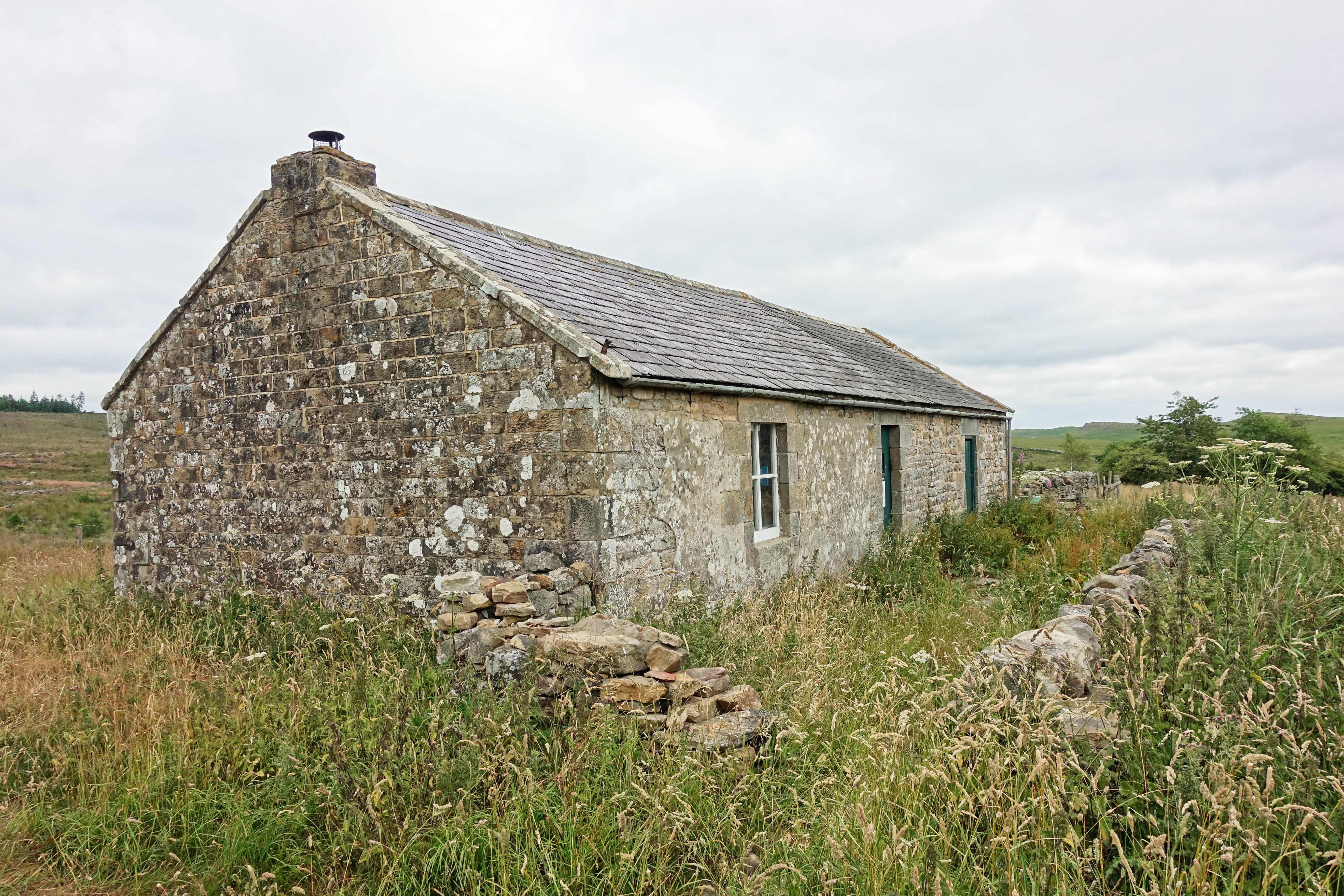 Walking the Pennine Way, I dropped down from Hadrians Wall to Rapishaw Gap to leave the wall and cross the short, sodden tussocky bog, heading toward Kielder Forest. The clegs were biting furiously and just for good measure the midges came out to join them. There are just a few MBA bothies in England and Houghtongreen is just a short half-mile from the path. It was a welcome halt for the night. It was a hot summer and the nearby spring was dry, thankfully there was a small stream flowing just a short walk away.