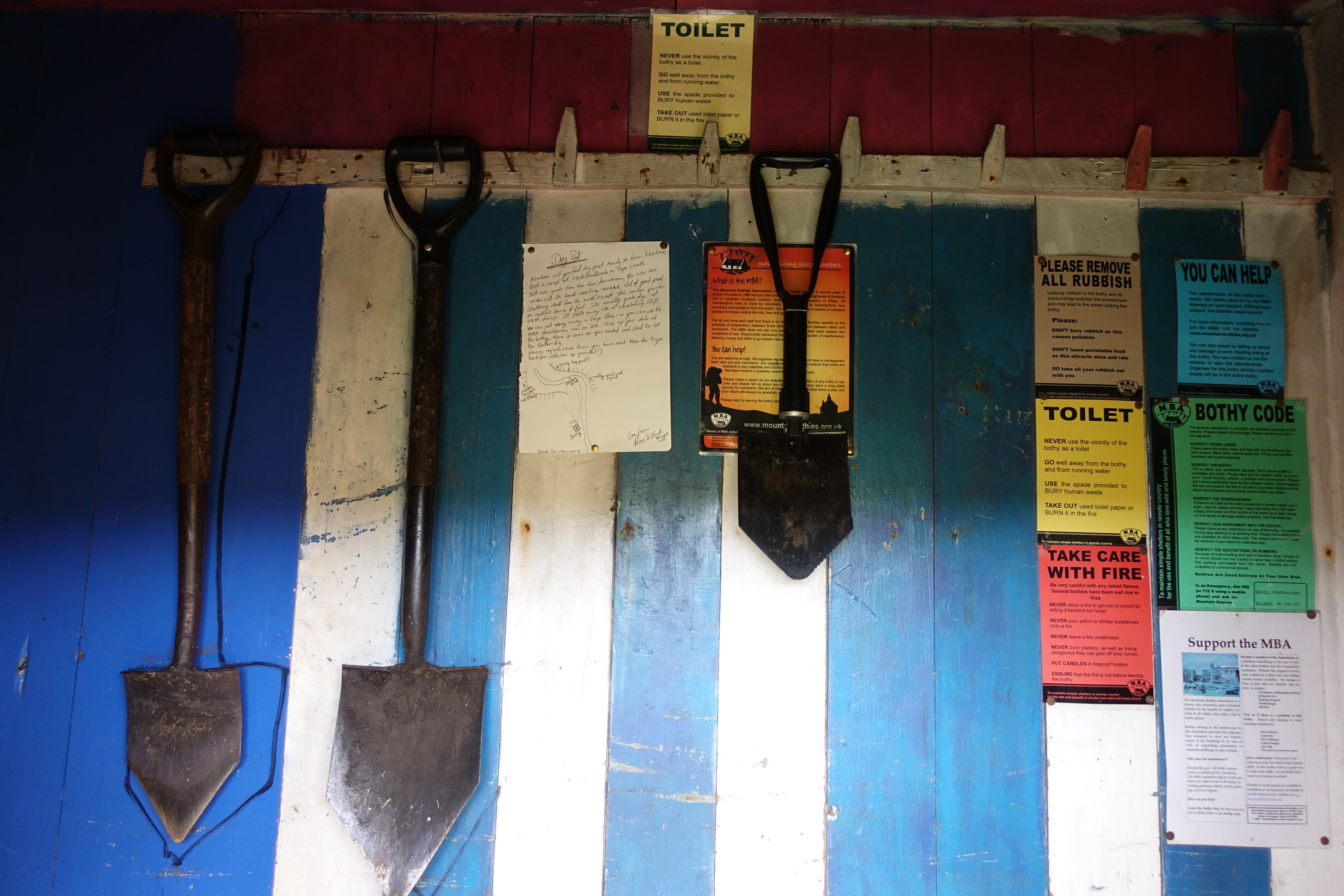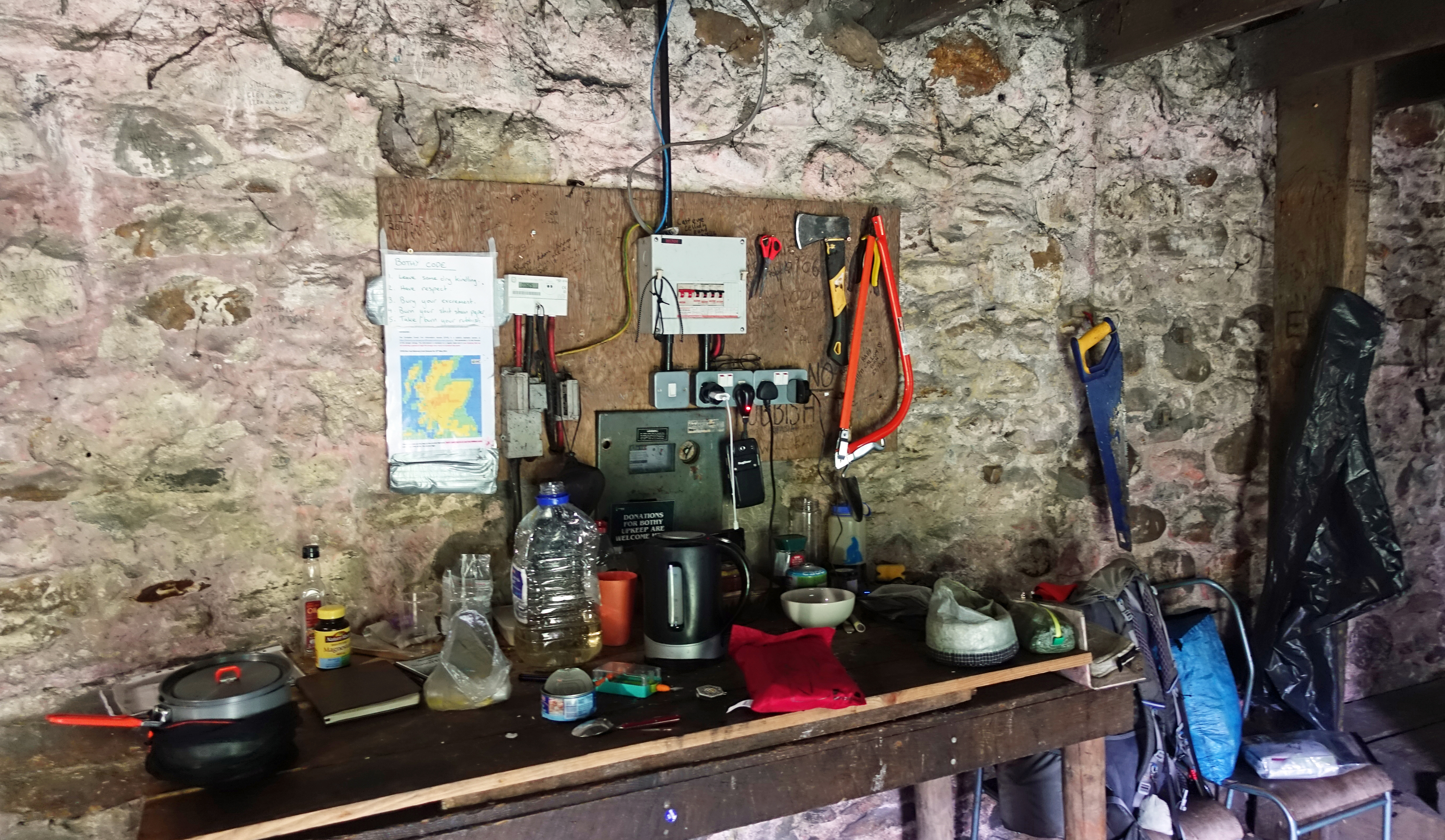 The necessary tools provided in bothies for those requiring facilities