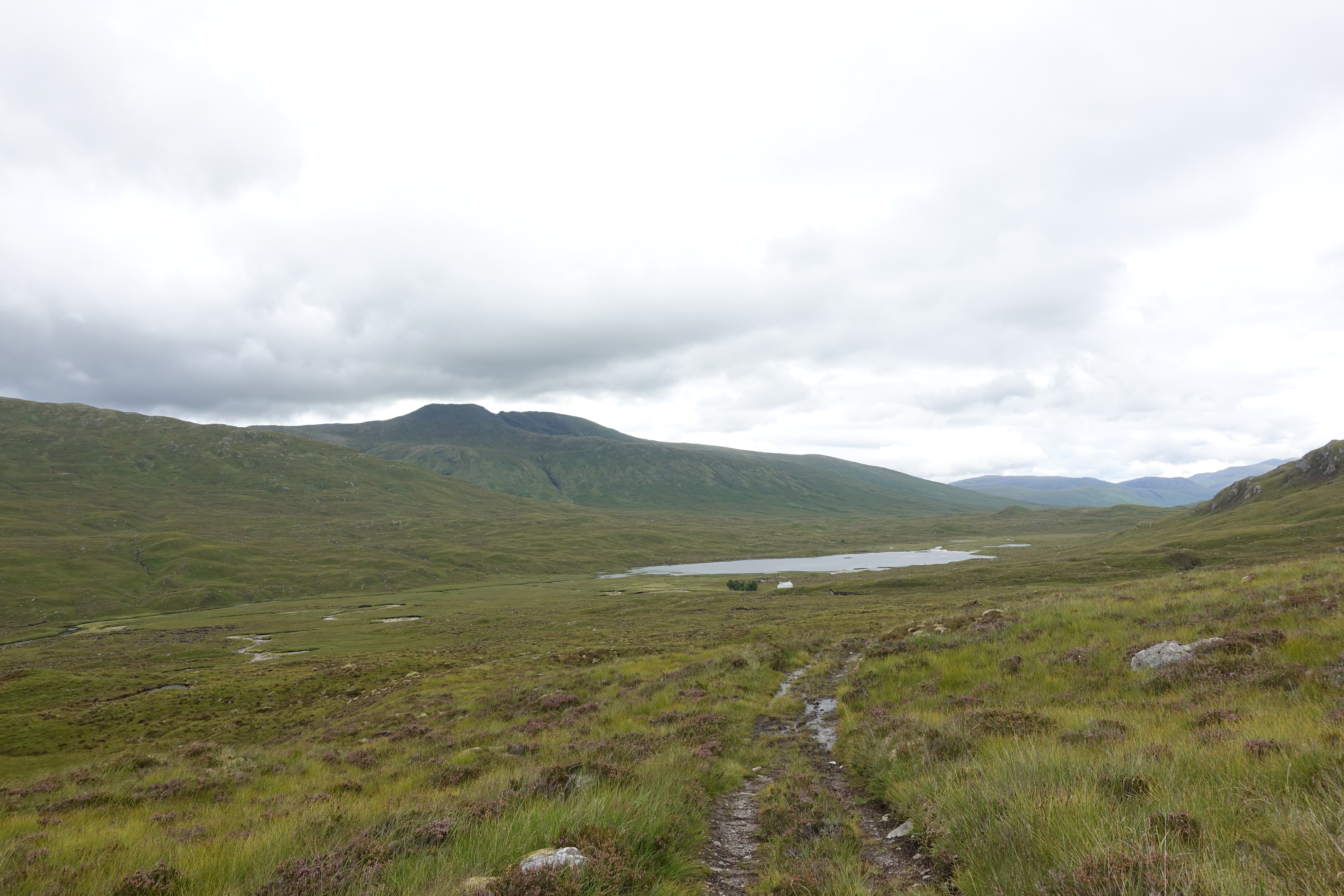 Ken and I left Maol-Bhuidhe together, splashed across the stream feeding the little Loch Cruoshie, then parted our ways, he to climb Munros on the way to his next lochan, me to continue to Strathcarron.