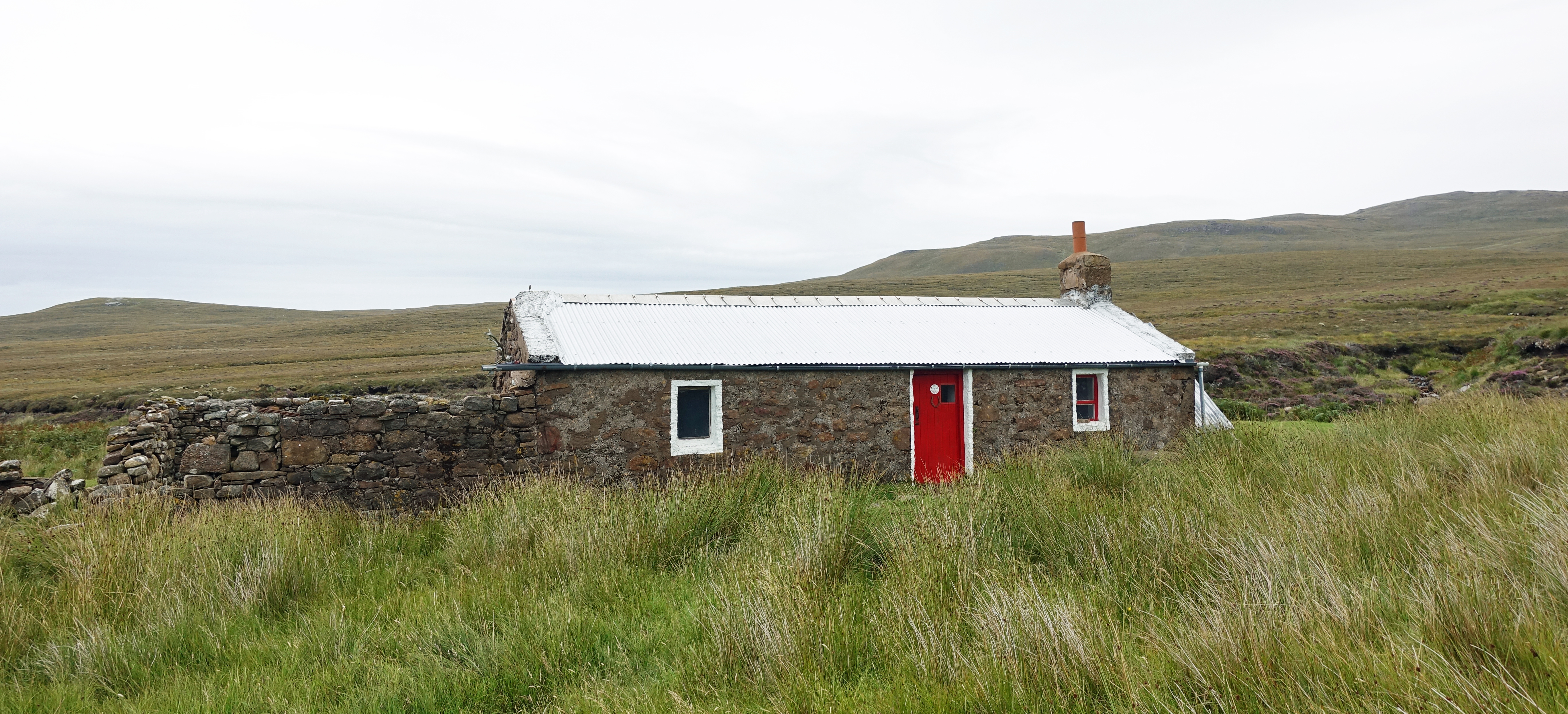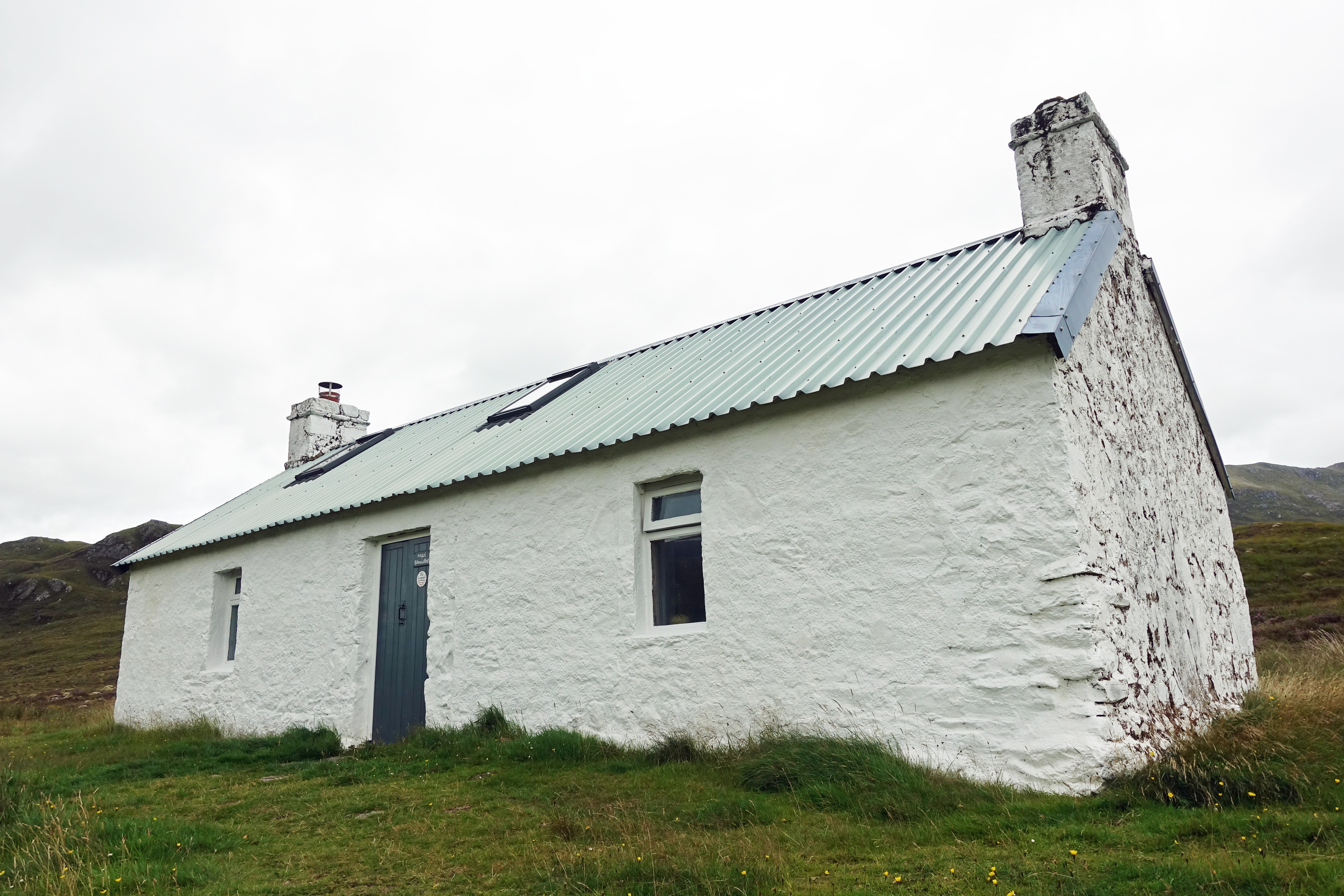 White-washed Maol-Bhuidhe bothy can be seen from miles away. This is one of the most remote habitable dwellings in Scotland