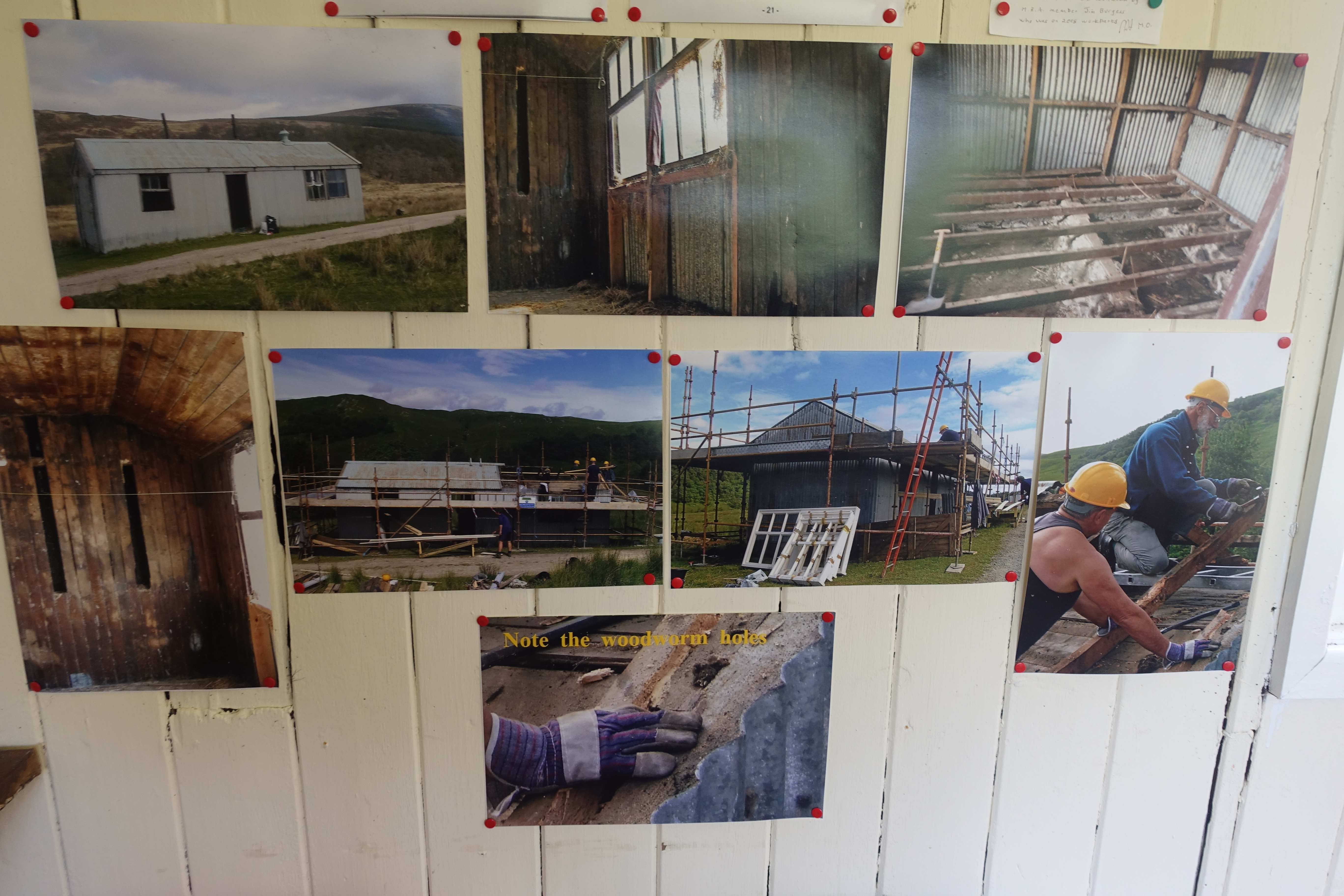Photographic record of the restoration of The Schoolhouse, pinned to its wall by proud MBA works party