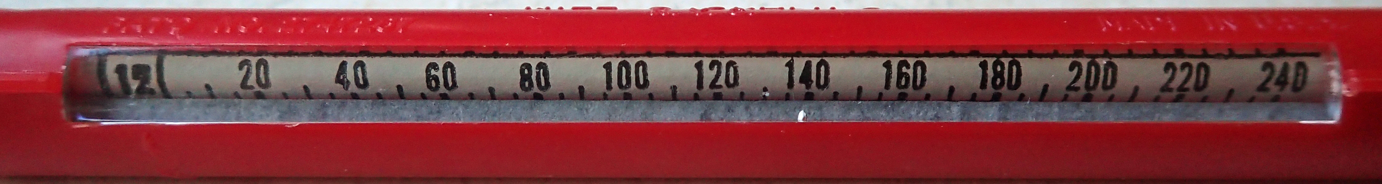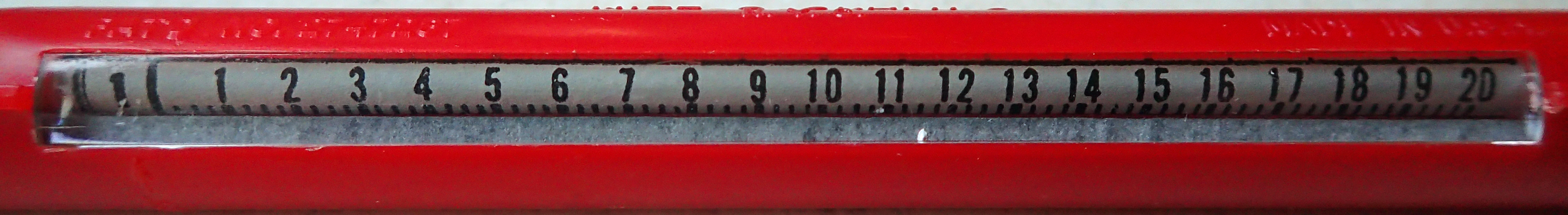 There are an impressive thirty scales on the roll inside the measurer. All of these are shown at the end of this blog. Once the roll of paper is rotated as far as it can go in one direction, the word STOP (repeated three times) is shown, indicating that the roll has to now be rotated in the opposite direction.