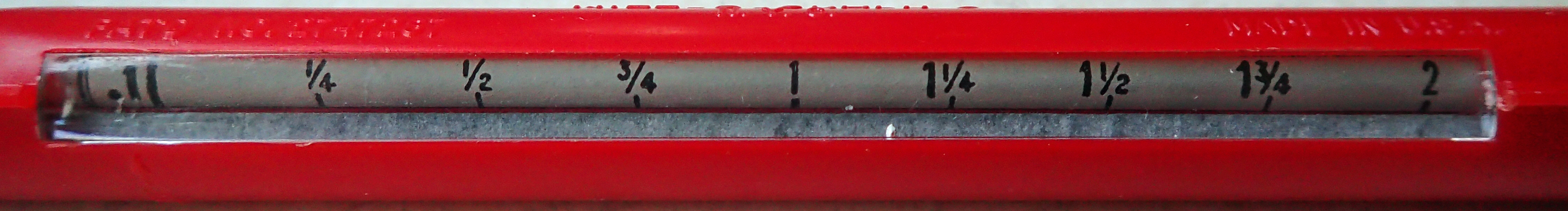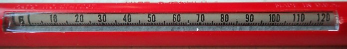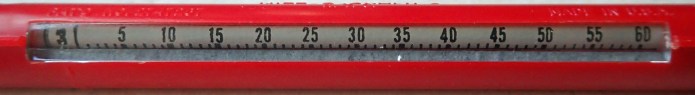 Other than the scale visible through the instruments side window, the only other writing on the body reads: ‘DIR‘ (with arrow, indicating direction of use, ‘PAT’D NO. 2747287‘, ‘MILE-O-GRAPH ® N.Y.C.’, ‘MADE IN U.S.A.’