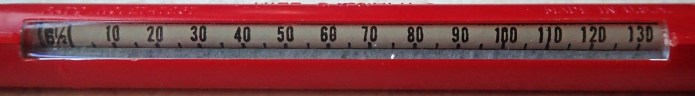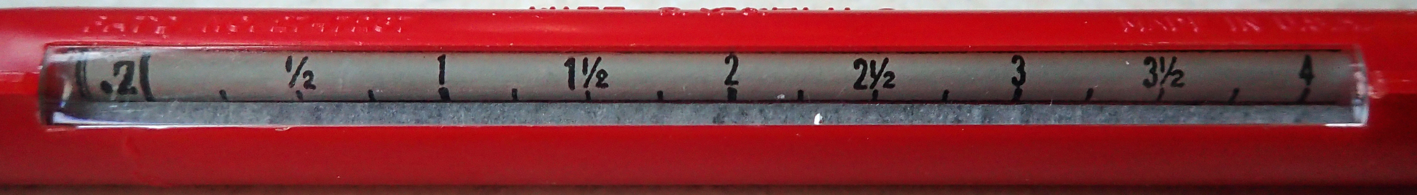 Louis Petion introduced a number of novel elements with this measurer. Other than the new or refined operating and indicating mechanisms, one of the handiest is the roll of paper, or ‘similar material’, printed with various scales, that could be turned to by twisting the end cap. Regretably it is this element that stops working first on these measures.