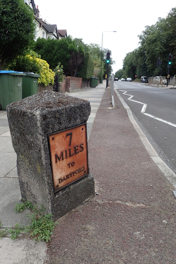 Milestone on Shooters Hill. 7 miles to riverside Dartford, I would reach there on Day Two