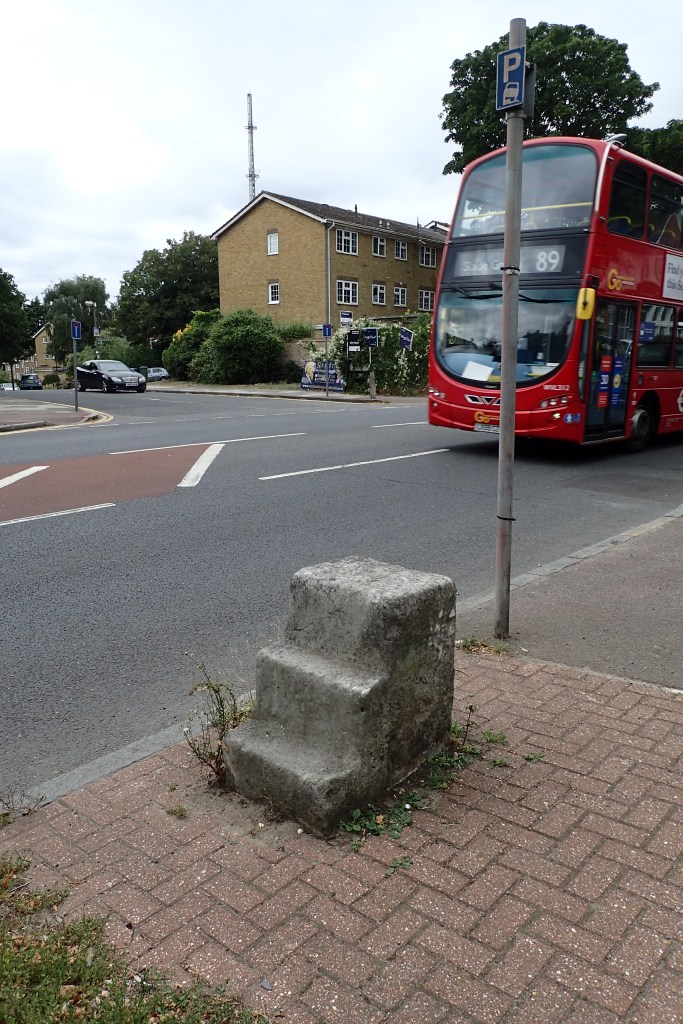 Mounting block on the summit of Shooters Hill marks the location of the original 1749 Bull Tavern