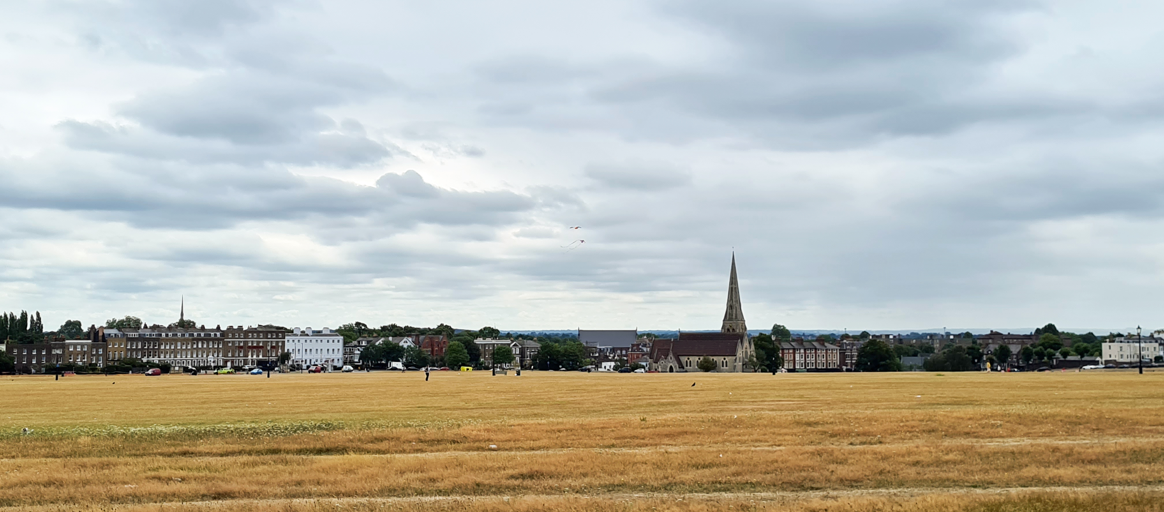 Passing through a wealth of diverse cultures, the route soon begins the steady climb up Blackheath Hill to the extensive heath at the top, surrounded by housing. My Uncle lived here decades ago and our family would be bundled up periodically in the car to make the long journey here for family reunion. This callow youth was occasionally able to escape to gaze at deer in nearby Greenwich Park. Today the air was thick with traffic fumes, Despite the grey sky, I was sweltering, there was nowhere remotely pleasant to take a breather. I skipped halting for an early lunch, paused to drink from my bottle, but onward, always onward. A ‘saharan plume’ was expected over England and its presence was making itself known, my shirt was dripping from the humidity.